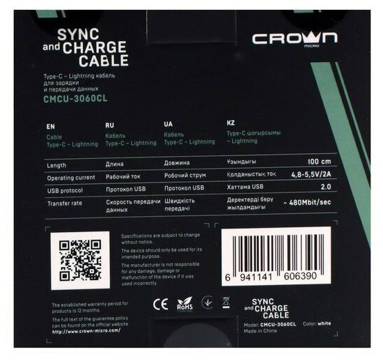 Сервис сравнения цен СкидкаГИД предлагает сравнить цены на товар «USB кабель Crown CMCU-3060CL white»