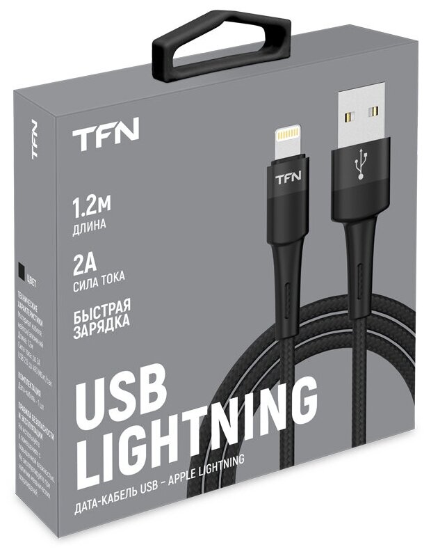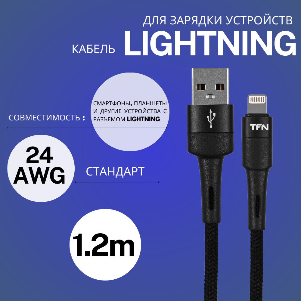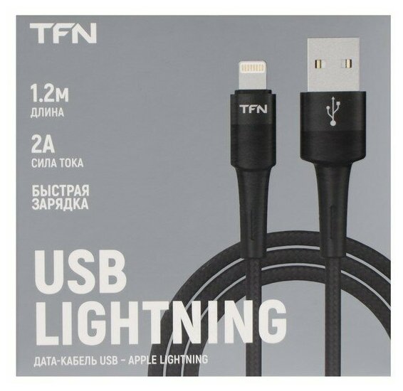 Кабель USB TFN 8pin Envy 1.2m нейлон black (TFN-C-ENV-AL1MBK) чёрный