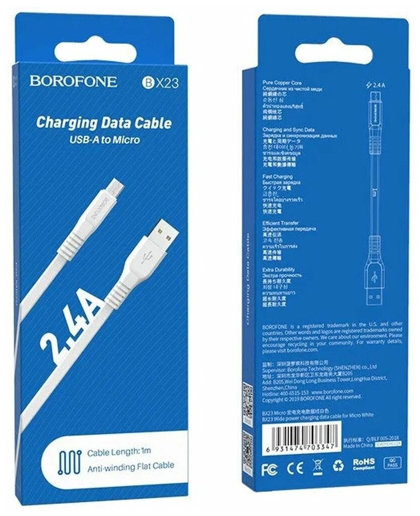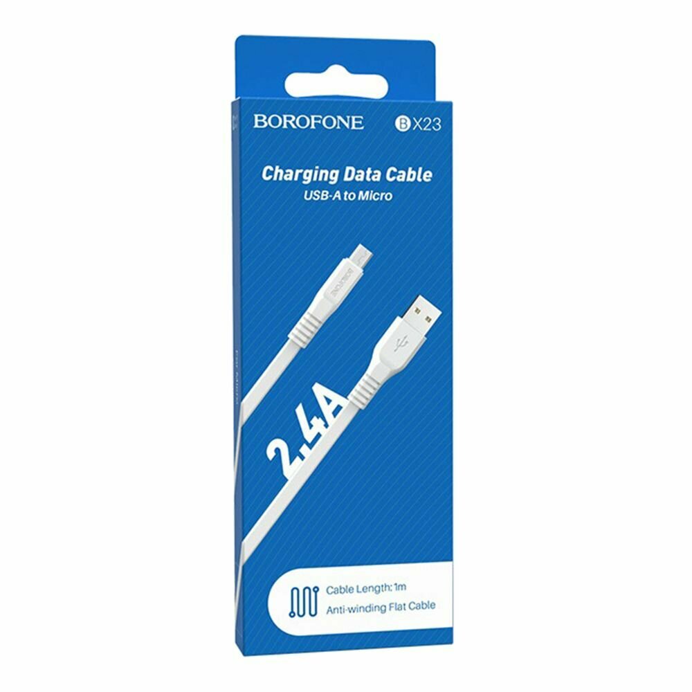 BOROFONE BX23 Широкий силовой кабель для зарядки и передачи данных для Micro-USB, 1 м, 2,4 А, оплетка из ПВХ, плоский кабель