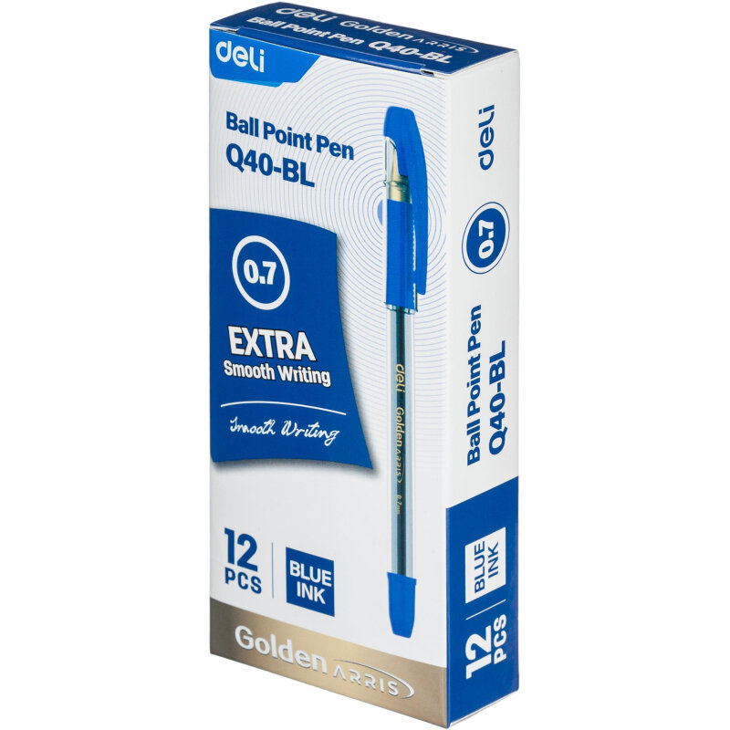 Ручка шариковая неавтоматическая Deli Arris Golden благодаря своему эргономичному дизайну отлично лежит в руке и радует глаз своим внешним видом. Ручка с удобной для письма мягкой зоной захвата обеспечивает легкое, мягкое и комфортное письмо. Элегантный полупрозрачный корпус с позолоченными деталями, изготовлен из высококачественных материалов. Удобно лежит в руке и не вызывает дискомфорта даже при длительном использовании. Диаметр пишущего узла ручки составляет 0.7 мм. Четкие линии чернил не размазываются при нечаянном соприкосновении с рукой. Не оставляет следов с обратной стороны бумаги, не пачкает и не царапает ее. В производстве ручек используются чернила пониженной вязкости, гарантирующие необыкновенно мягкое и четкое письмо на любой бумаге. Пишет очень тонко и аккуратно. Удобный клип на колпачке позволяет фиксировать ручку на ежедневниках, блокнотах и карманах одежды. Цвет клипа и резиновой манжетки соответствуют цвету чернил. В комплекте 12 уп.