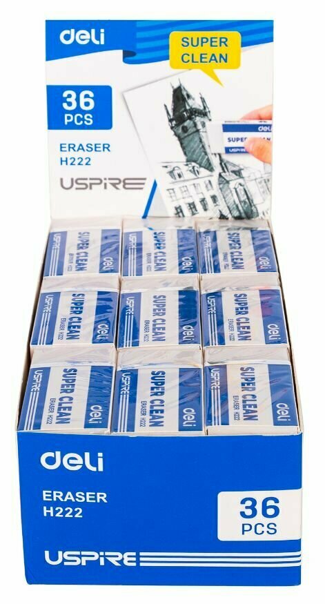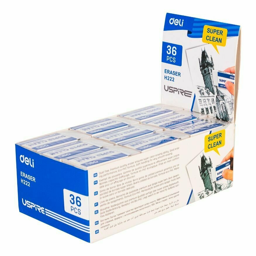 Набор ластиков Deli -P прямоугольный, 45х22.5х10.5мм, белый, картон.кор., 36шт.