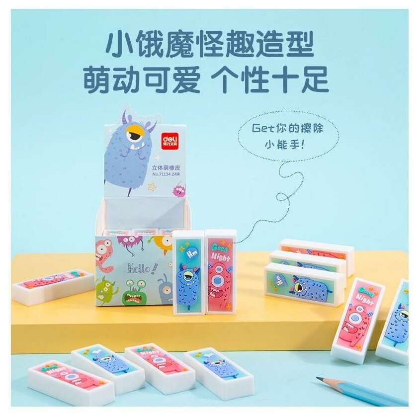 Набор ластиков Deli -P прямоугольный, 110x62x47мм, ПВХ, ассорти, картон.кор., 24шт.