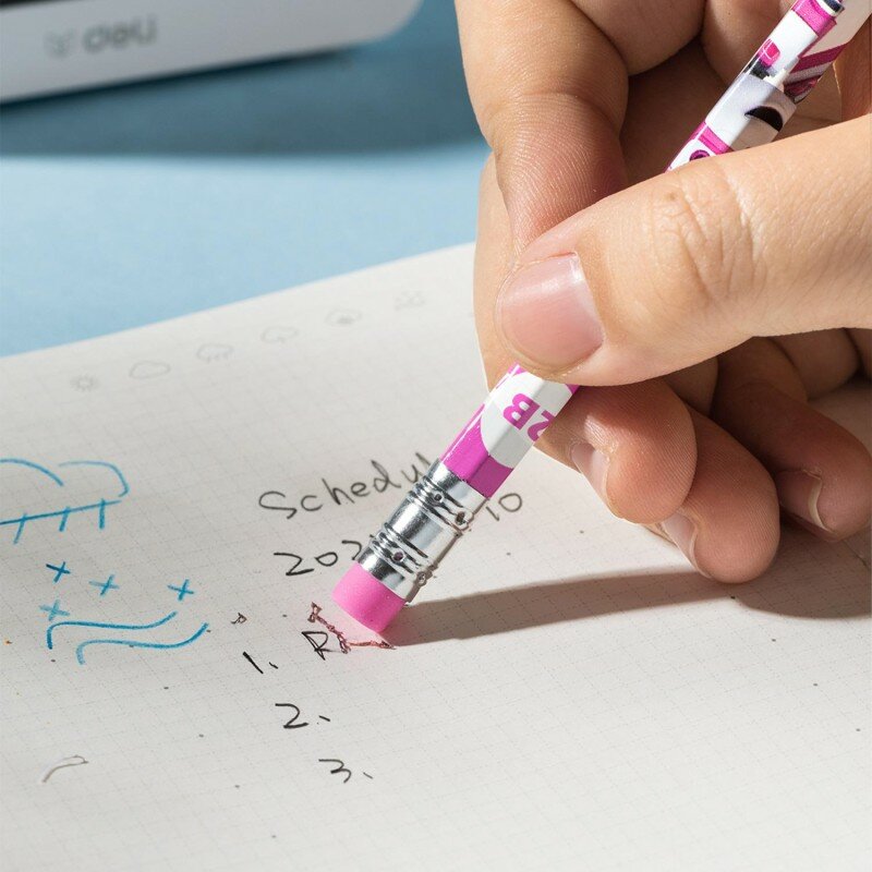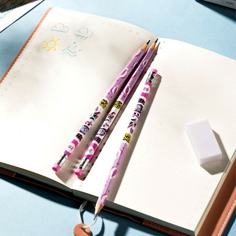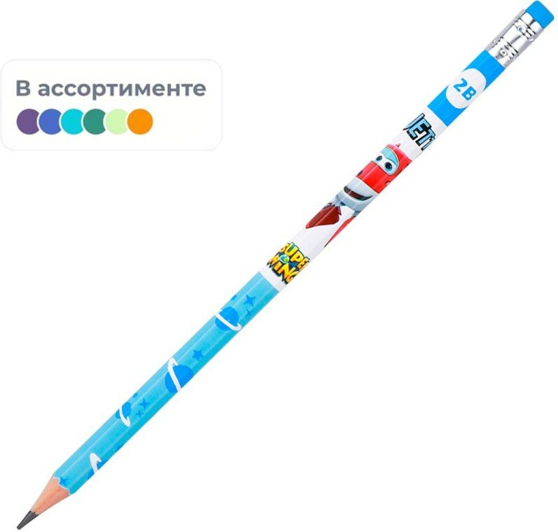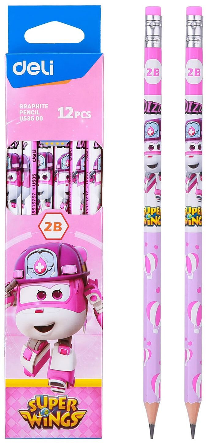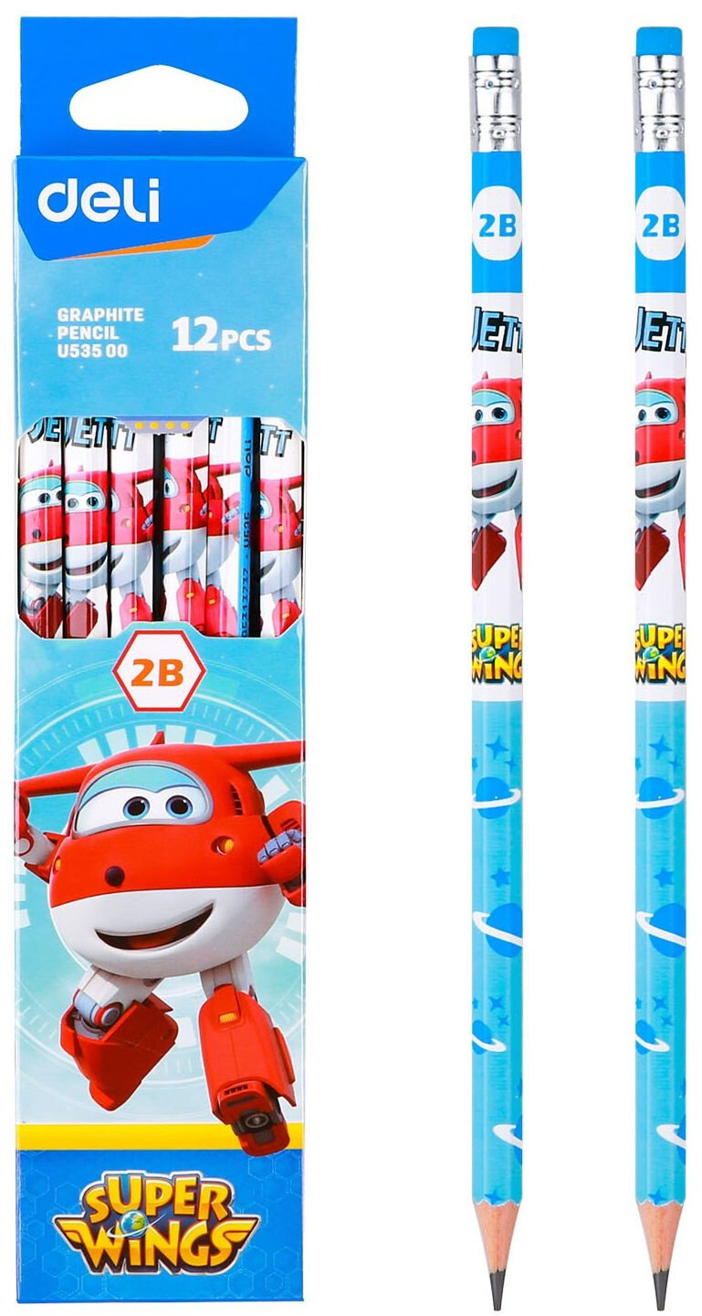 Канцтовары\Письменные и чертежные принадлежности\КарандашиКарандаш чернографитный Deli серии Super Wings с ластиком обеспечивает легкое, мягкое и комфортное письмо. Идеально подходит для черчения. Карандаш c привлекательным принтом "Супер Крылья" невероятно обрадует вашего ребенка. Простые карандаши - это, наверное, самые популярные и самые востребованные школьные принадлежности. Эргономичный шестигранный корпус предотвращает соскальзывание пальцев при письме. Легко затачивается и не ломается при падении. Высококачественный грифель сделан из мелко дисперсионного графита и тщательно очищен от примесей. За счет этого штриховка получается равномерной и четкой. Шестигранная форма развивает умение правильно держать карандаш у детей , а также не дает карандашу укатываться со стола. Яркий простой карандаш легко найти, если он упадет со стола и с той же легкостью обнаружить его в рюкзаке учащегося. Простой карандаш с ластиком поставляется заточенным и выполнен в 2-х тонах: голубом и розовом. Ластик без ПВХ, нетоксичен, в цвет корпуса и безопасен для детей. Внимание! Товар поставляется в нескольких вариантах цвета/дизайна (без возможности выбора).