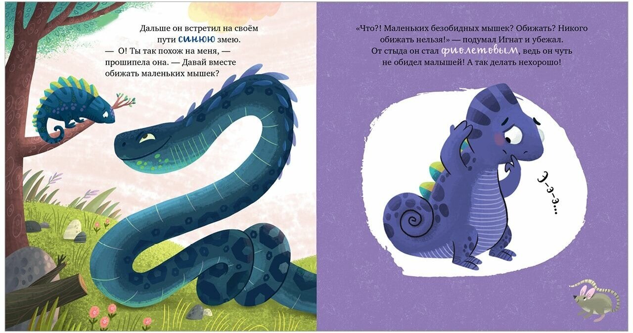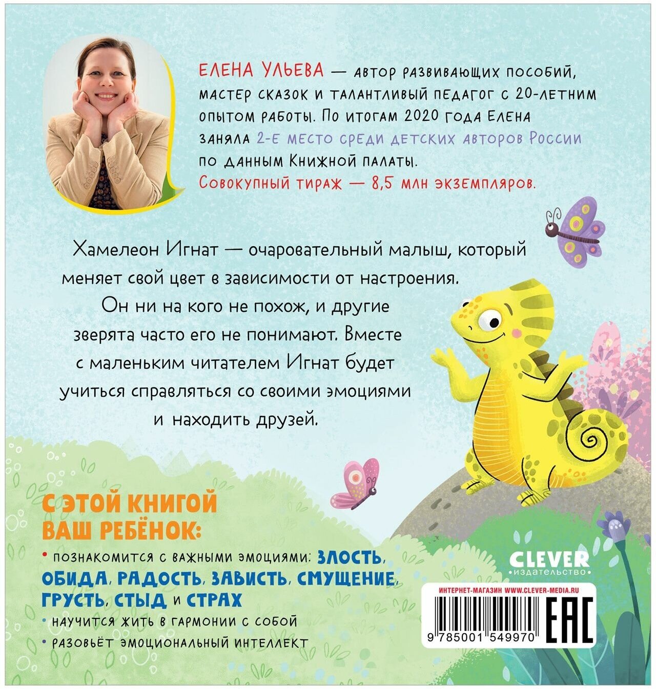 Хамелеон Игнат — очаровательный малыш, который меняет свой цвет в зависимости от настроения. Он ни на кого не похож, и другие зверята часто его не понимают. Вместе с маленьким читателем Игнат будет учиться справляться со своими эмоциями и находить друзей.