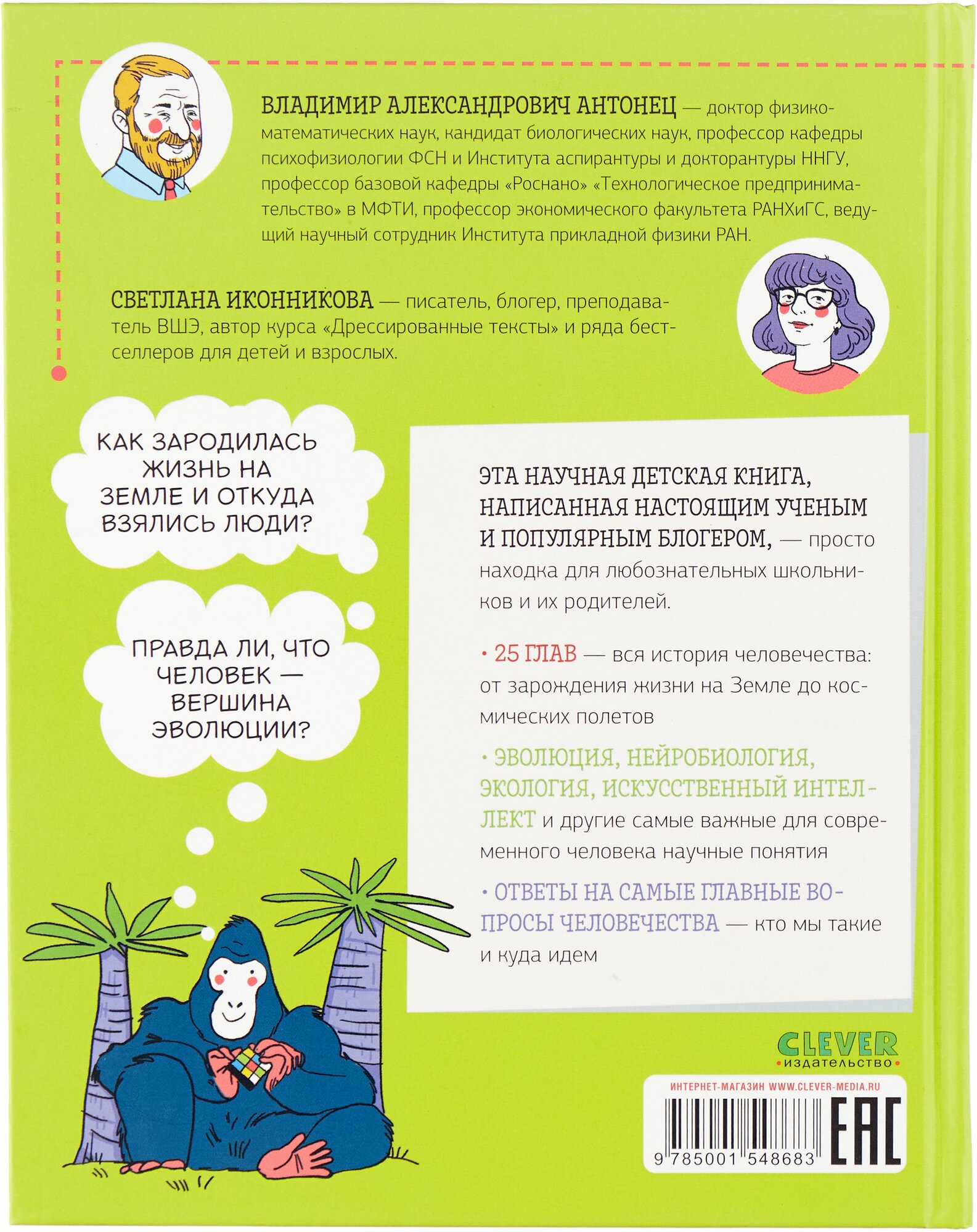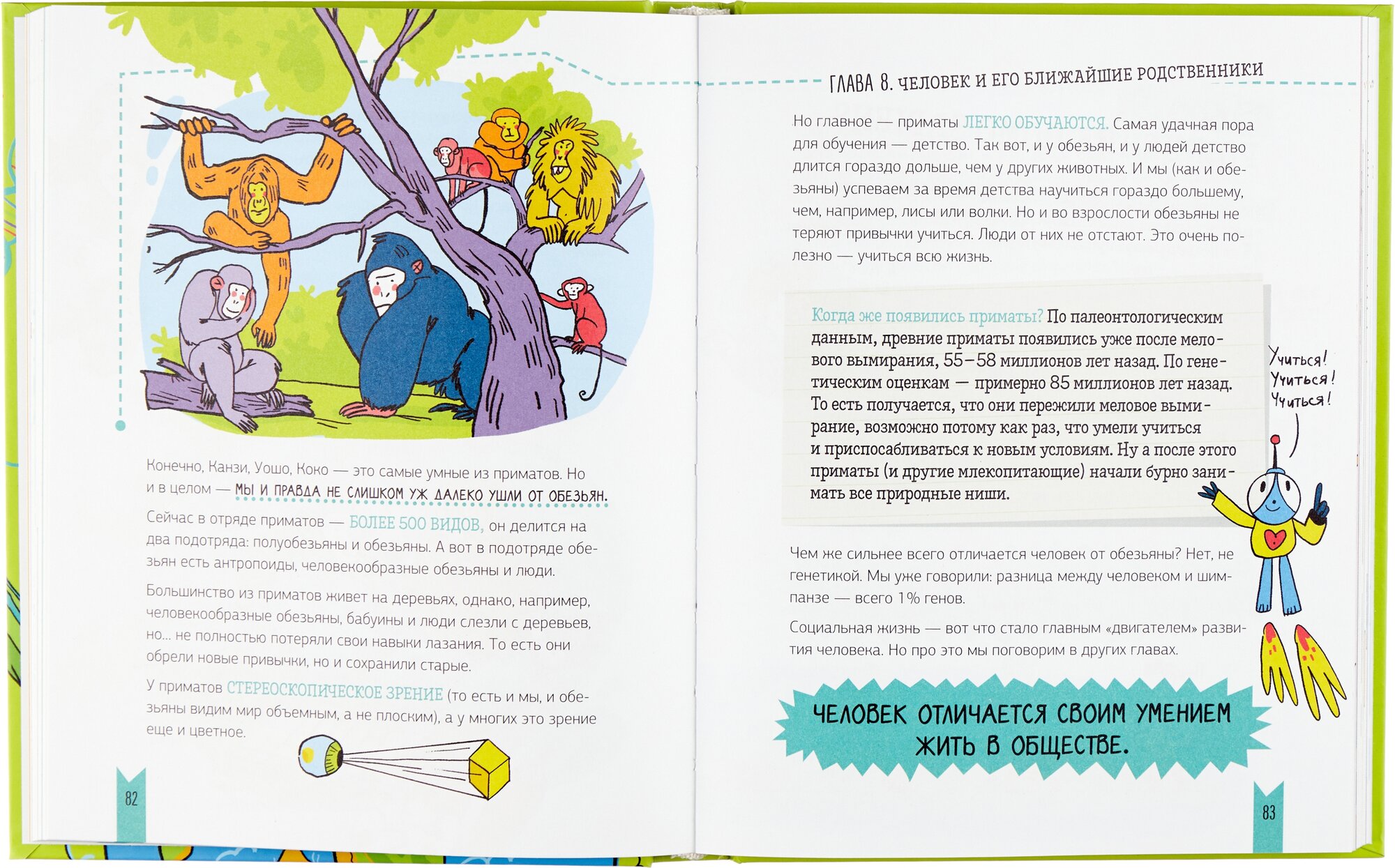 В 25 главах книги — вся история человечества: от зарождения жизни на Земле до космических полетов далекого будущего. Она расскажет школьнику об эволюции, нейробиологии, экологии, искусственном интеллекте и других важных для современного человека научных понятиях.