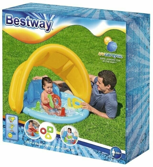 Детский бассейн Морская ракушка подарит детям прекрасное лето! Поддерживающая спинка особенно подходит для детей, которые еще не могут самостоятельно сидеть. Различные цветные кольца и конусы, помогут развить вашему ребенку мелкую моторику. Каждый конус расположен на небольшом расстоянии от спинки сиденья и других конусов, чтобы ребенок смог самостоятельно играть с ними. Детский бассейн также оснащен съемным навесом от солнца, который обеспечивает дополнительную безопасность во время игр. Благодаря компактному дизайну его можно носить с собой куда угодно, а также использовать в помещении без воды.