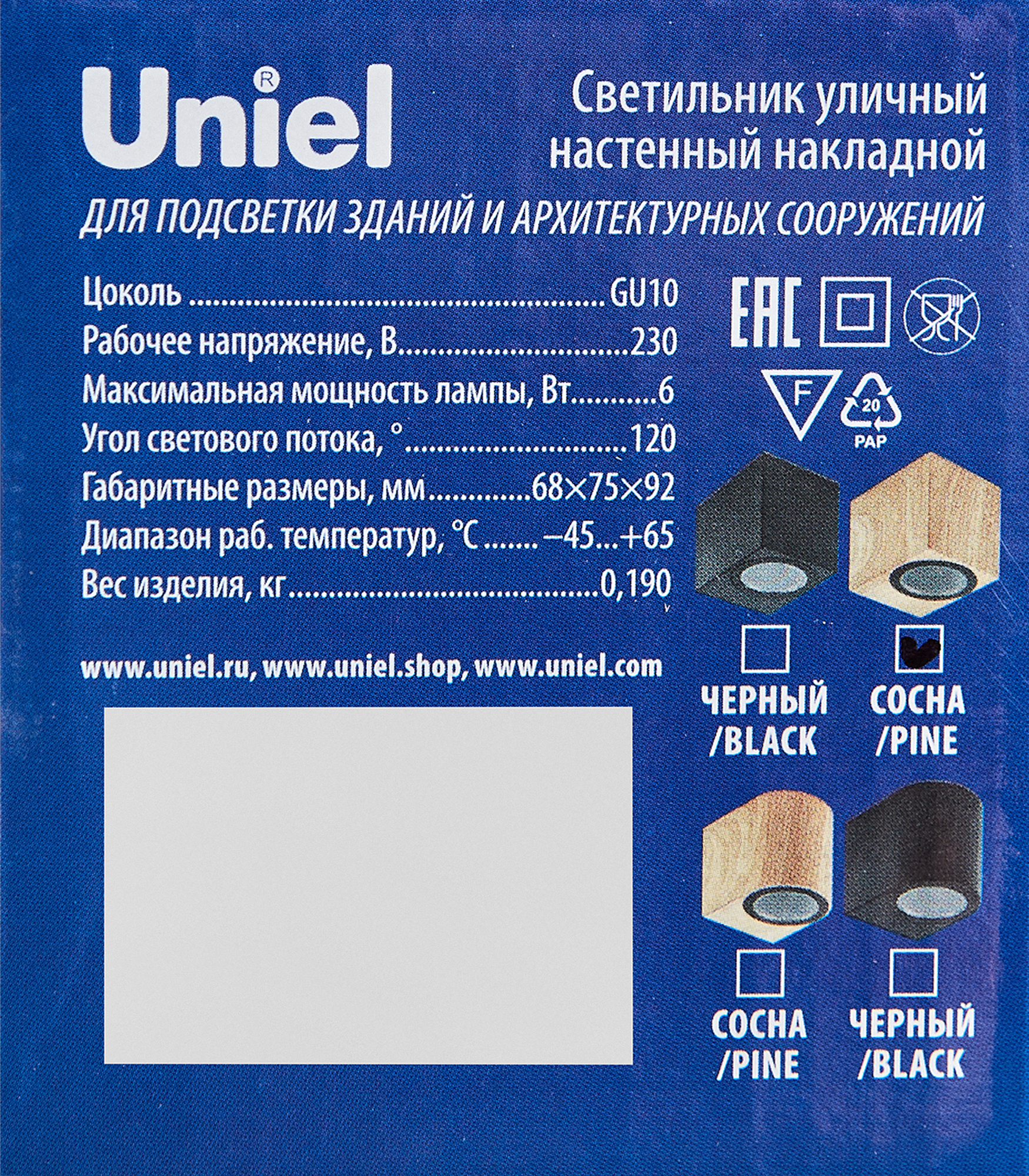 Сервис сравнения цен СкидкаГИД предлагает сравнить цены на товар «Уличный настенный светильник Uniel UUL-P41A 6W/GU10 IP65 PINE UL-00010557 UUL»