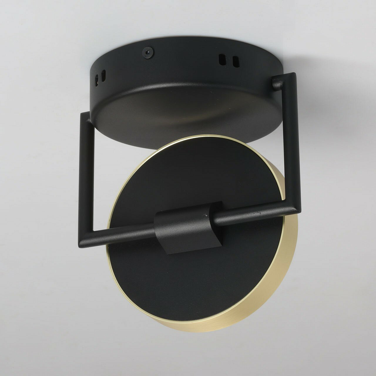 Светильник в стиле хай-тек пользуется популярностью. Оригинальный дизайн привлекает внимание. Матовый рассеиватель создает комфортное освещение. Встроенные светодиоды экономят электроэнергию. Благодаря компактному размеру, светильник сохраняет пространство комнаты и органично смотрится на потолке. Металлическое основание потолочного светильника обработано по технологии порошкового окрашивания в черный цвет. Корпус плафона гальванизирован в цвет золота. Светодиодные источники света закрыты белым матовым акрилом.