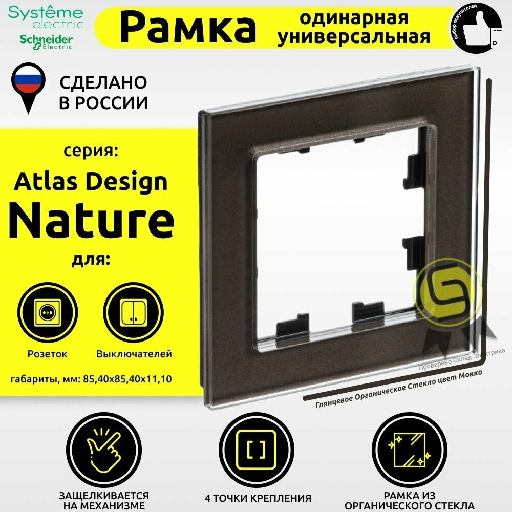 Рамка Schneider Electric ATLASDESIGN NATURE 1-пост органическое стекло мокко (ATN320601) ATN320601 AtlasDesign Nature