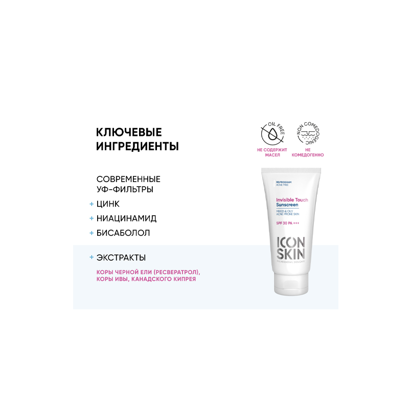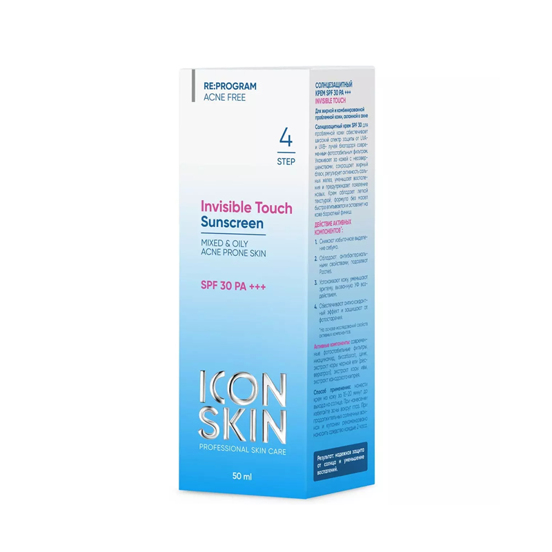 Icon Skin Солнцезащитный крем-флюид Invisible Touch SPF30 для жирной и комбинированной проблемной кожи 50 мл (Icon Skin Re:Program) (ЭХ99989444500)