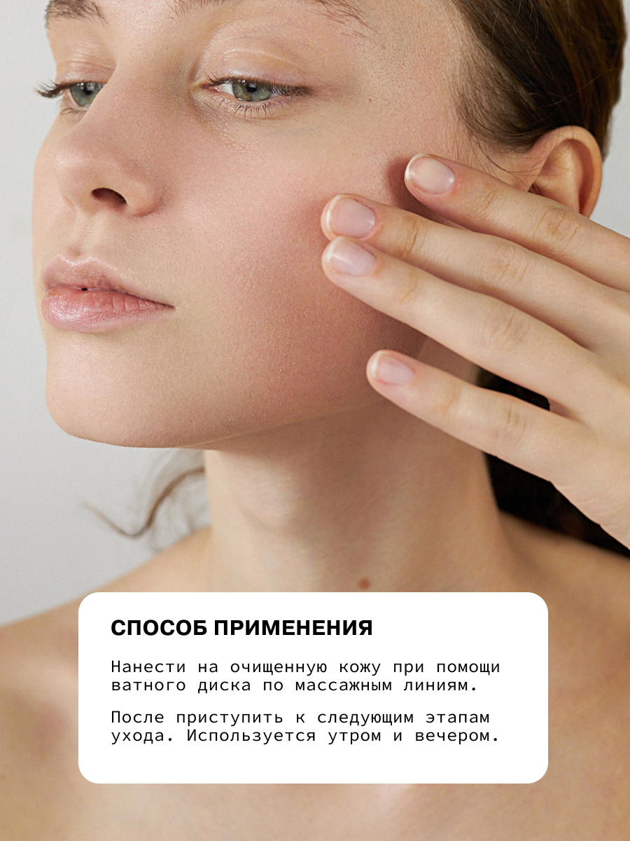 Нанести на очищенную кожу при помощи ватного диска по массажным линиям. После приступить к следующим этапам ухода. Используется утром и вечером.