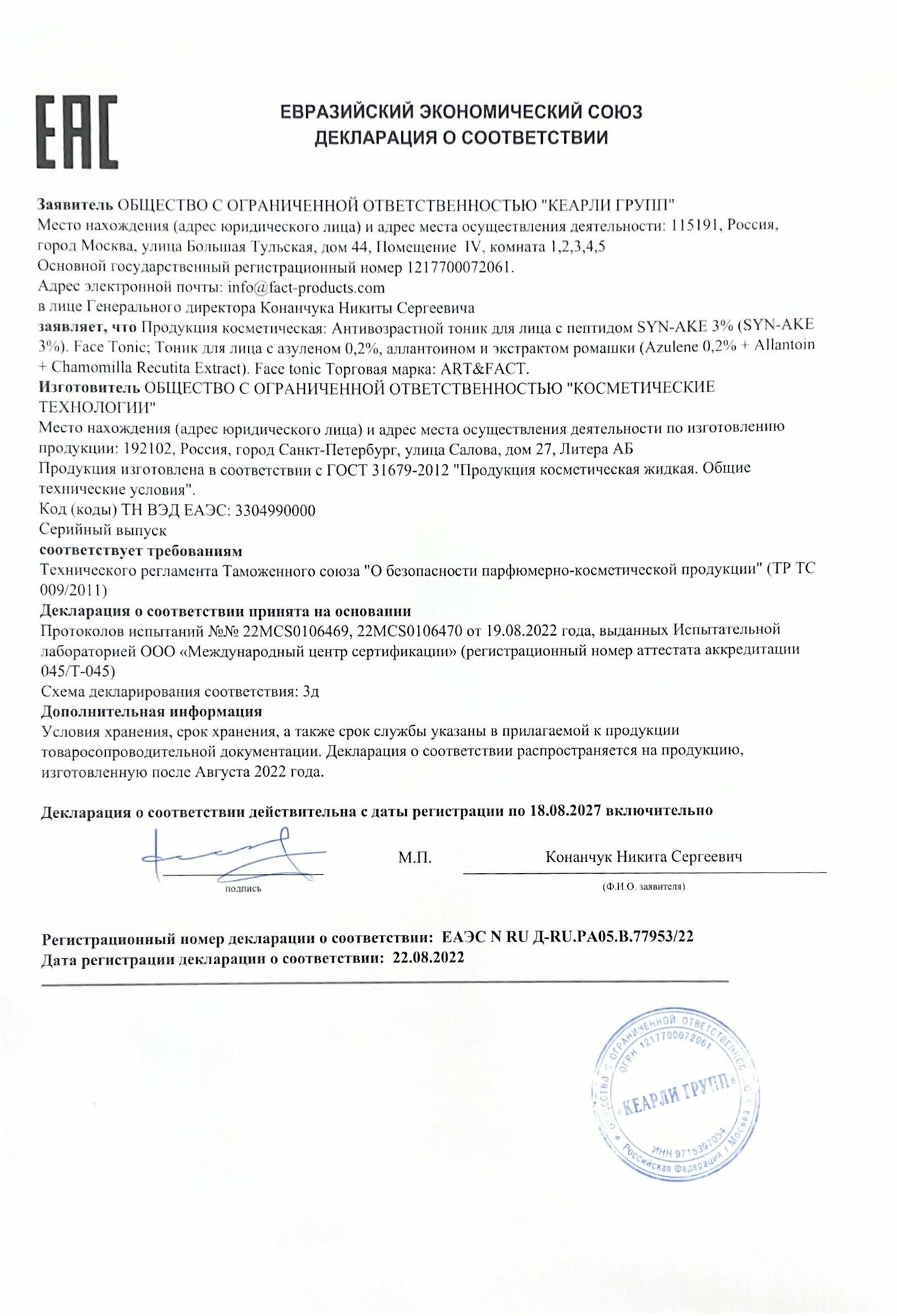 Сервис сравнения цен СкидкаГИД предлагает сравнить цены на товар «Art&Fact Тоник с азуленом 02% аллантоином и экстрактом ромашки для лица 150 мл (Art&Fact Восстановление) (ЭХ99989443529)»