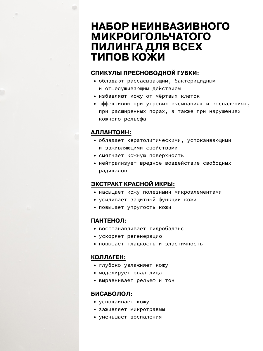 Двухступенчатый микроигольчатый пилинг позволяет достичь отличных результатов по улучшению кожной структуры без инвазивного воздействия.