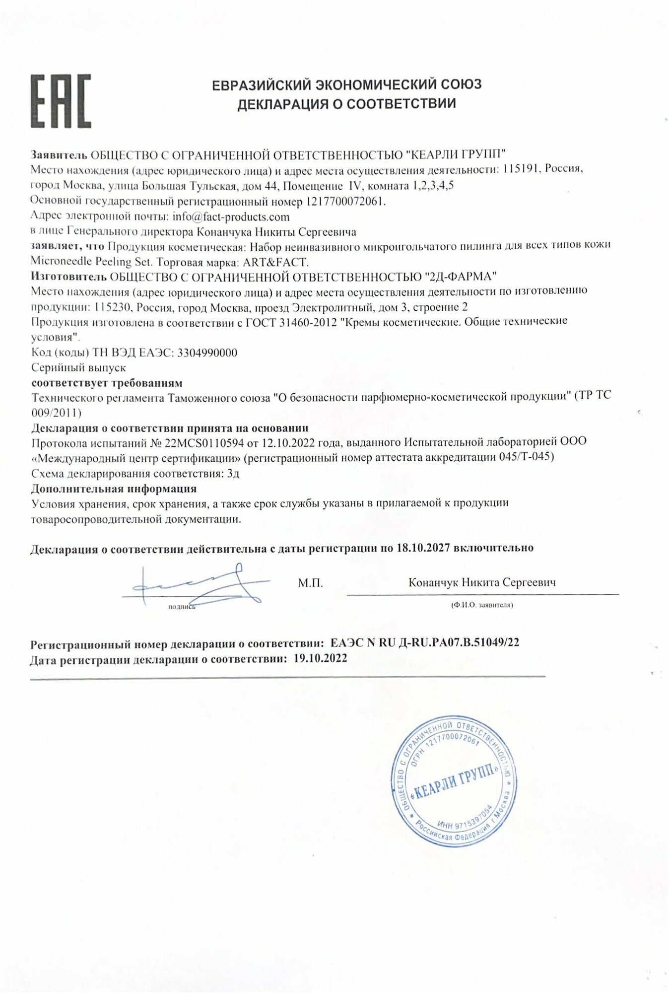 Art&Fact Набор неинвазивного микроигольчатого пилинга для всех типов кожи Microneedle Peeling Set 2 х 50 мл (Art&Fact Отшелушивание) (ЭХ99989443532)