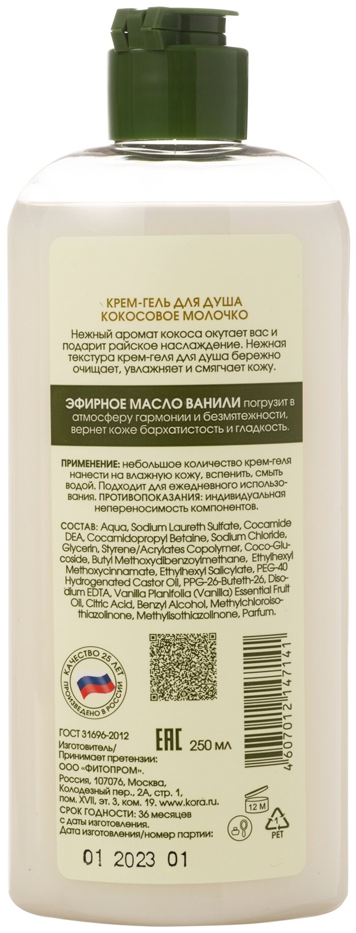 Кора Крем-гель для душа «Кокосовое молочко» 250 мл (Кора Daily Secrets) (ЭХ99989441077)