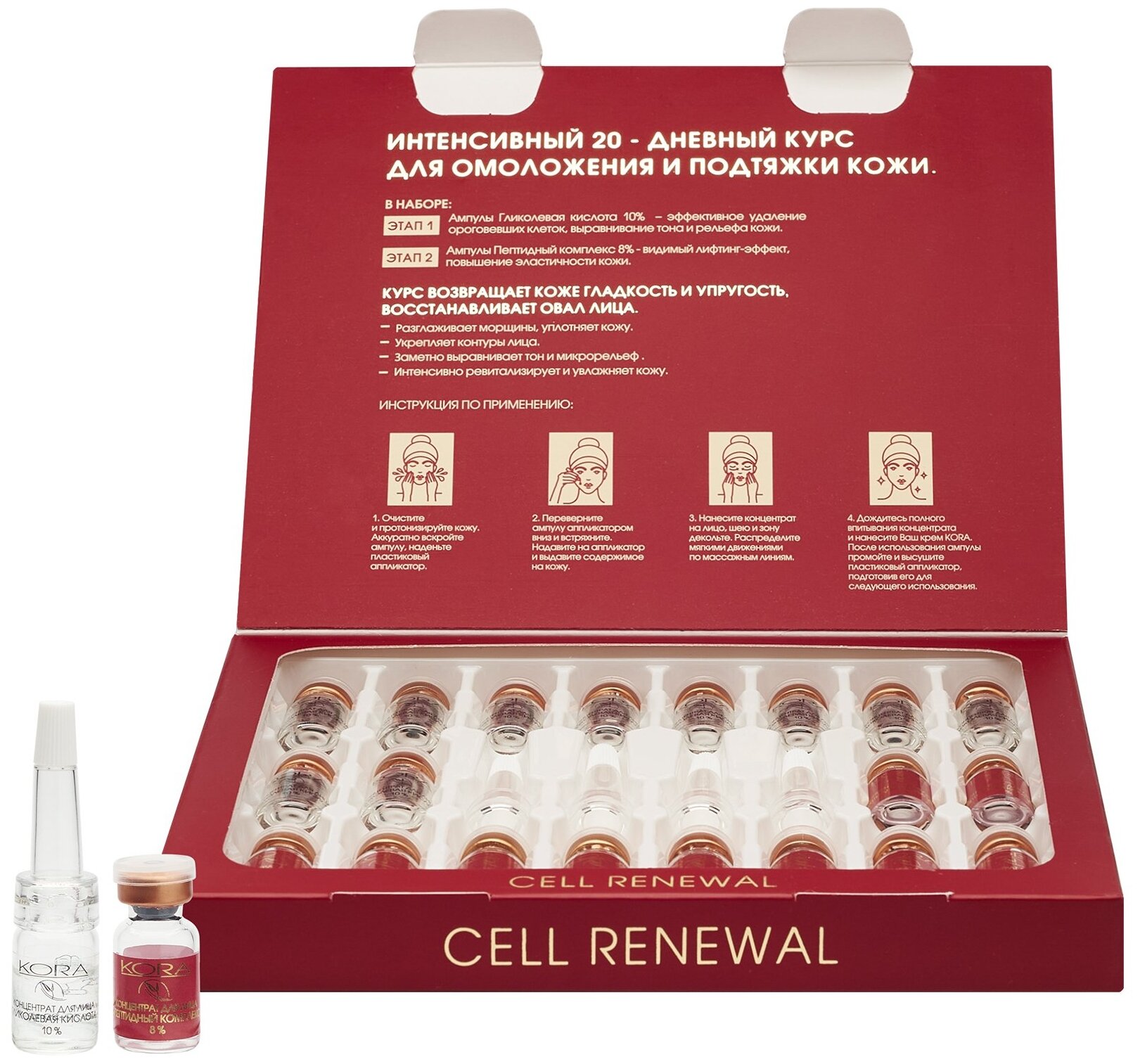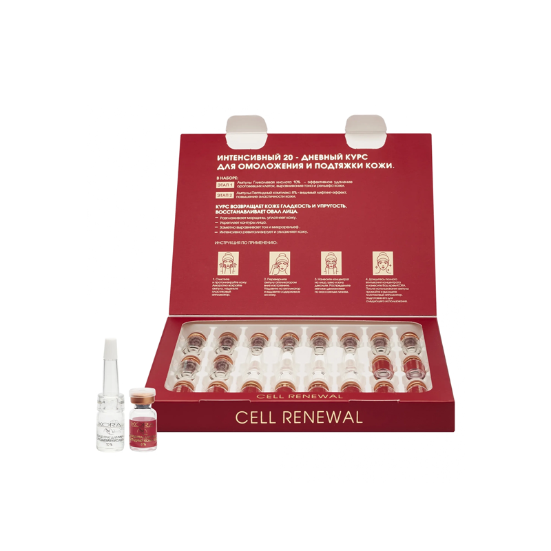 Кора Интенсивный 20-дневный курс омоложения и подтяжки кожи Cell Renewal 20 ампул х 2 мл (Кора Ампульные концентраты) (ЭХ99989434822)