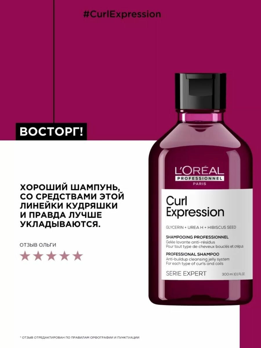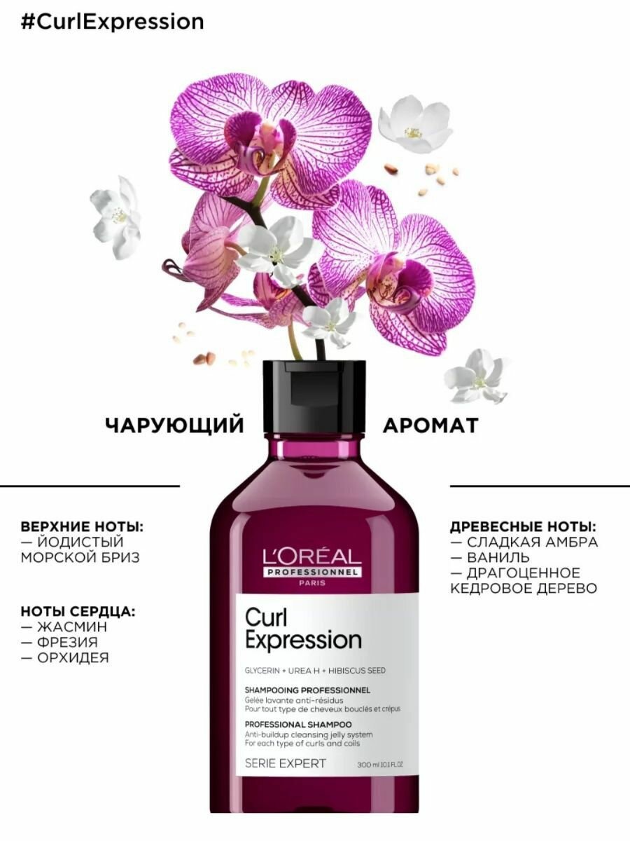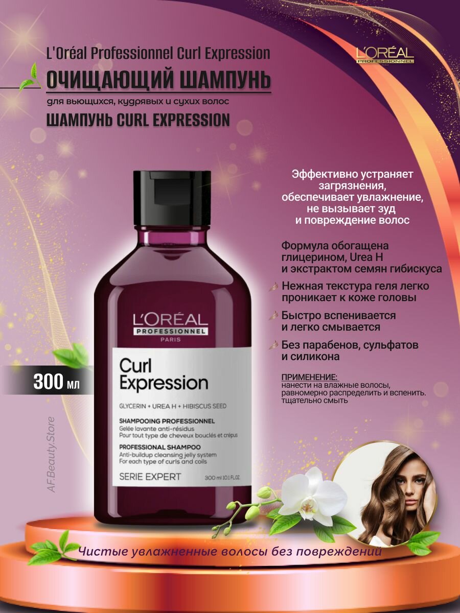 Профессиональный очищающий шампунь Curl Expression с текстурой геля бережно устраняет загрязнения, обеспечивает увлажнение, не вызывая зуда или повреждения волос. Формула обогащена глицерином, Urea H и экстрактом семян гибискуса.