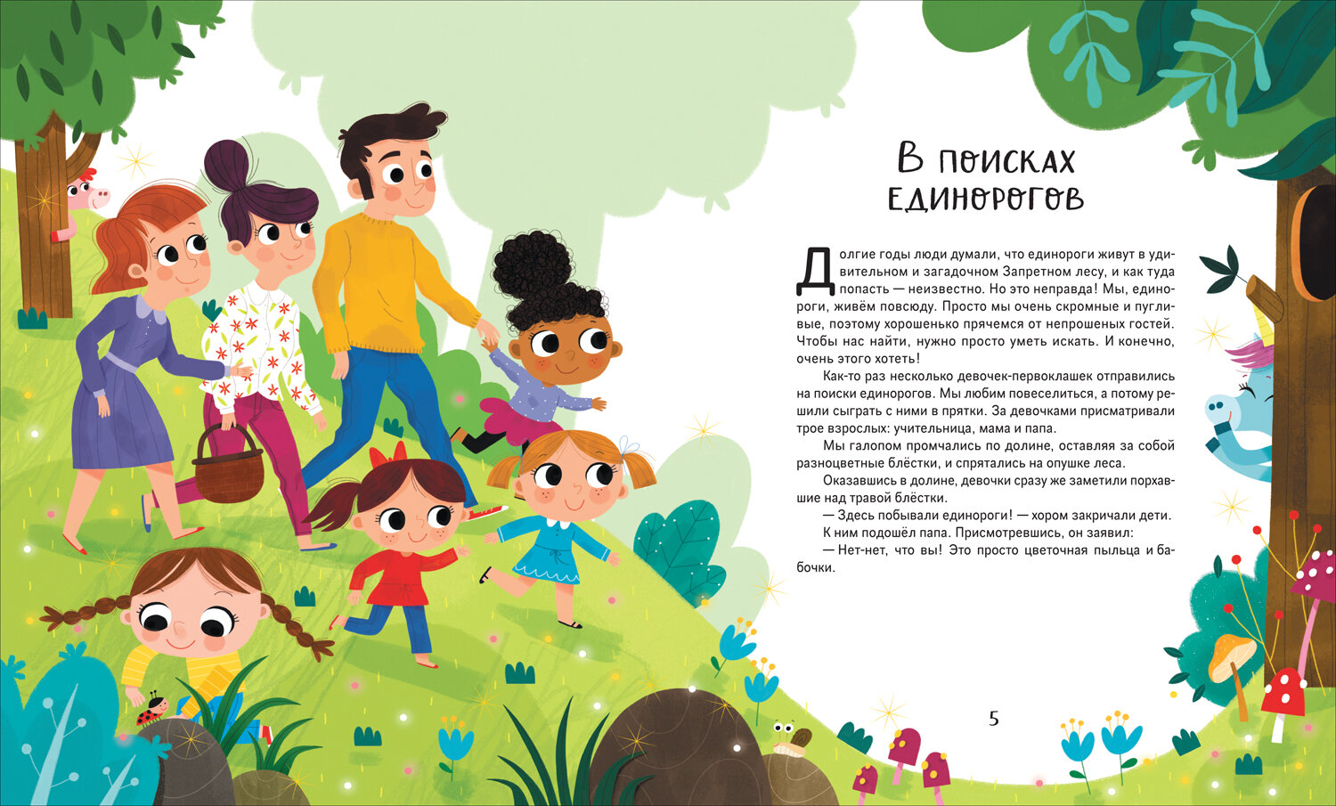 Прекрасный сборник детских рассказов про принцесс и единорогов. Рассказов не много, но они добрые, светлые, о дружбе, доброте и семье. Читать даже мне было приятно, эта простота умиляет, герои вышли живыми, каждый со своей особенностью. Многие могут посчитать, что книга больше для девочек, но и мальчикам она может понравится. Советую, книга с множеством картинок и большим шрифтом.