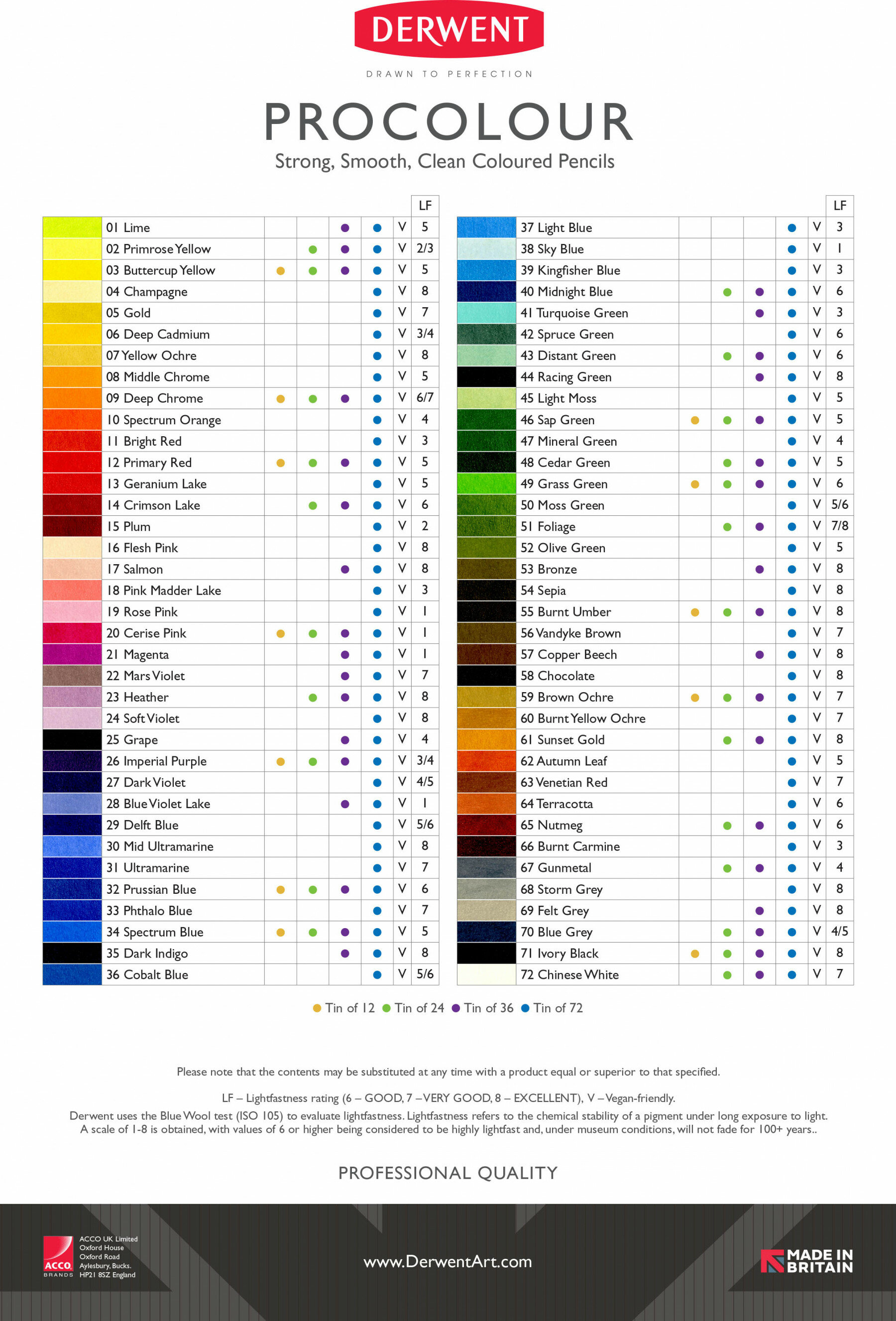 Карандаши Procolour отличаются очень высокой насыщенностью пигментами и особой текстурой грифеля.