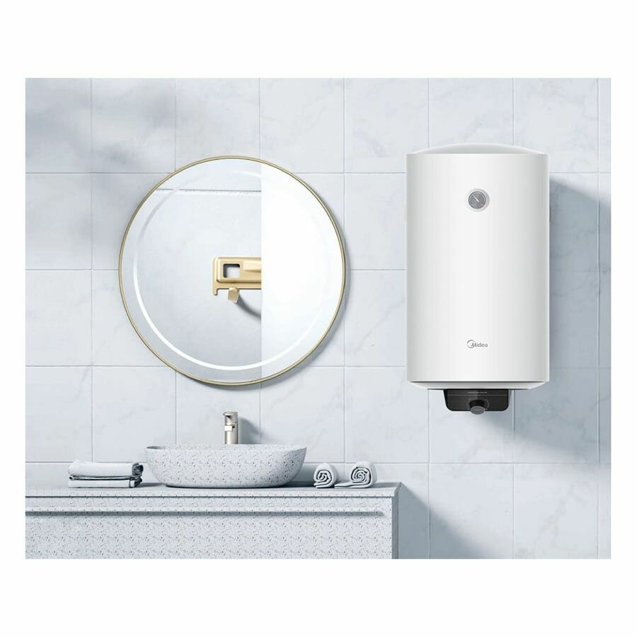 Электрический накопительный водонагреватель Midea (Мидеа) MWH-5015-RED используется в бытовых целях и имеет современный дизайн. Для управления предусмотрен механический регулятор температуры, работающий за счет капиллярного термостата. Внутренний бак изготовлен из стали с эмалевым покрытием и оснащен магниевым анодом.