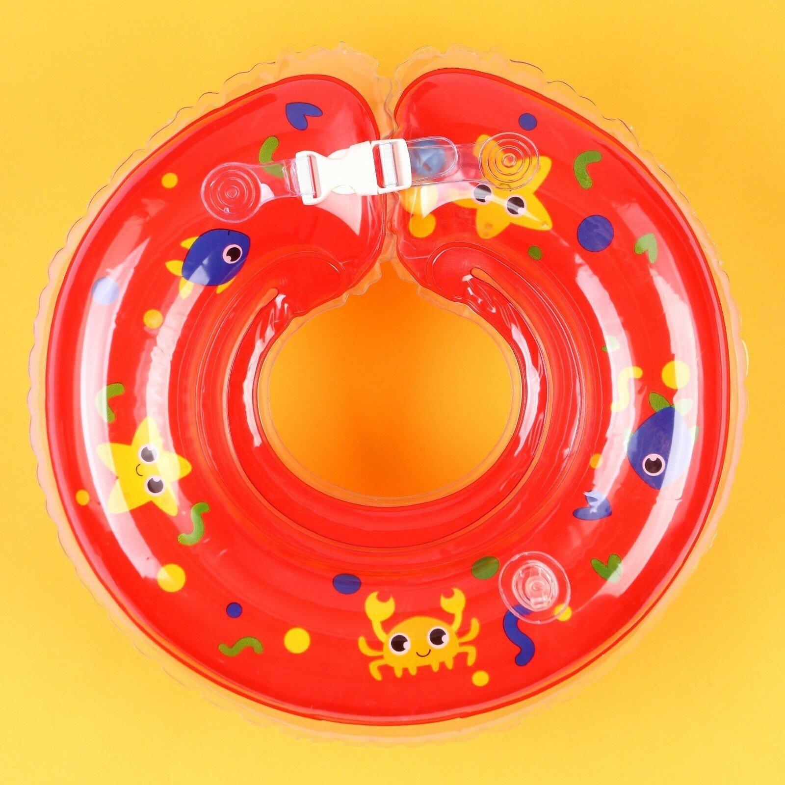 -Удобная фиксация: круг снабжён двусторонней липкой застёжкой, что позволяет регулировать плотность прилегания к телу малыша.
