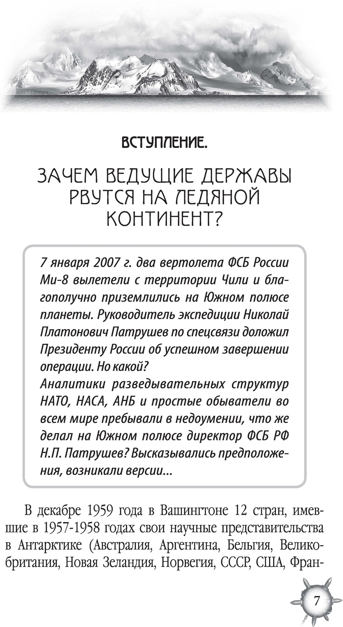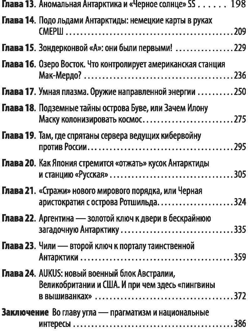 Авторы уверены: совсем скоро начнется военный передел Антарктических территорий, которые уже давно условно поделили между собой первые участники международного соглашения от 1959 года. Антарктиду называют ледяной кладовой, она богата залежами цинка, никеля, свинца, титана, платины, меди, золота, урана, драгоценными камнями. Однако не только полезные ископаемые влекли сюда передовые страны, в том числе и Германию времен Третьего рейха. Авторы делают сенсационные выводы: немецкие ученые создали теорию контроля физических полей планеты, по их стопам идут ныне Китай и США. И пока Россия отвлечена навязанным нам Западом хитроумным планом военного противостояния с Украиной, западный мир во главе с Америкой готовит осуществление прорывных задач полного овладения ледяной кладовой Планеты со всеми ее уникальными, запредельными возможностями.