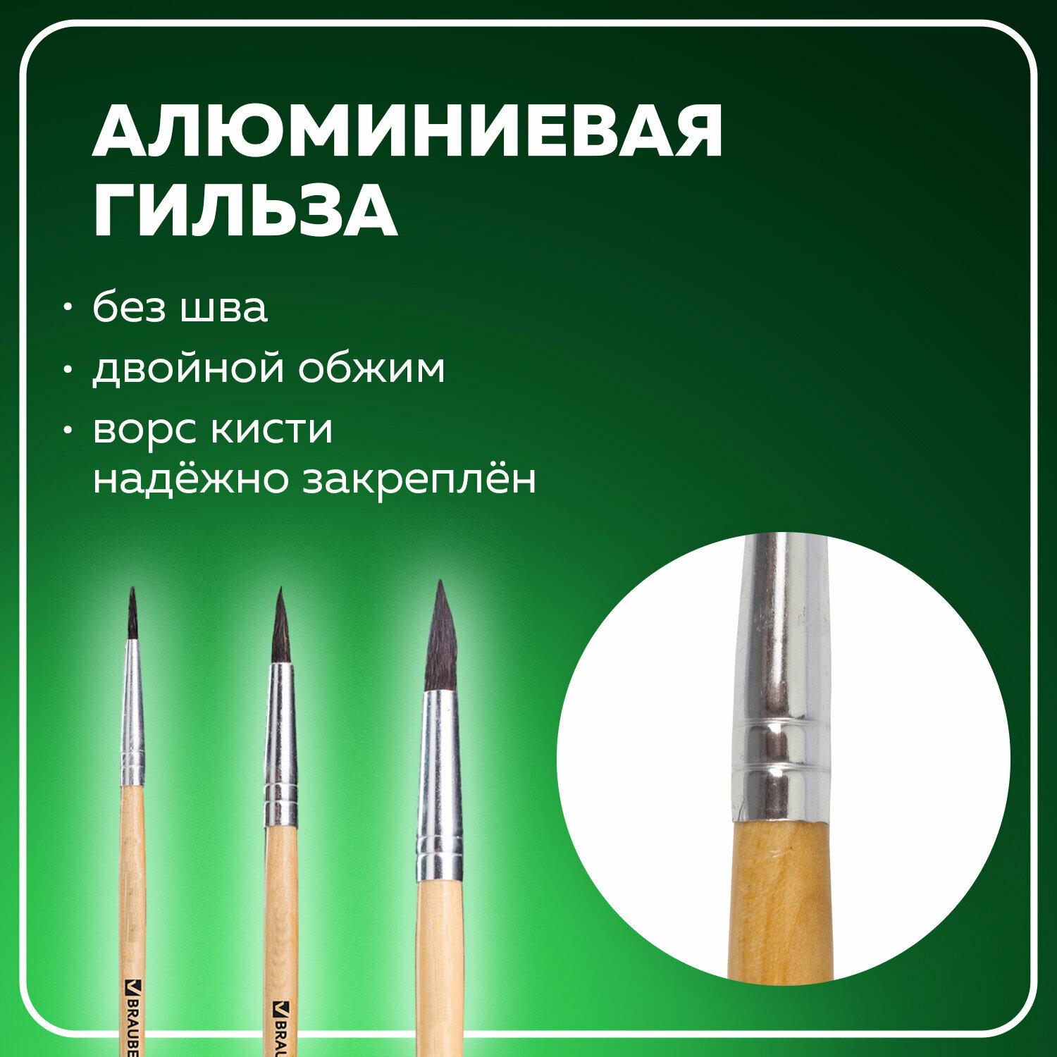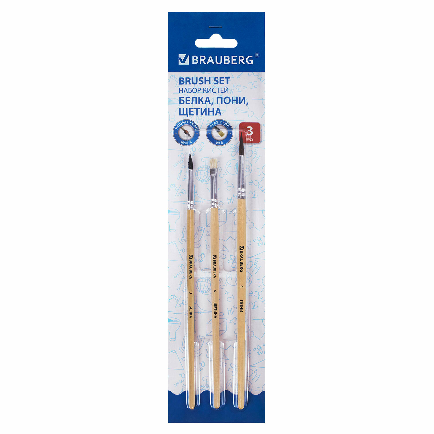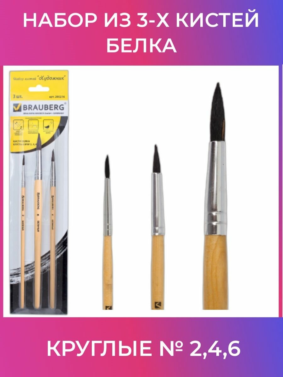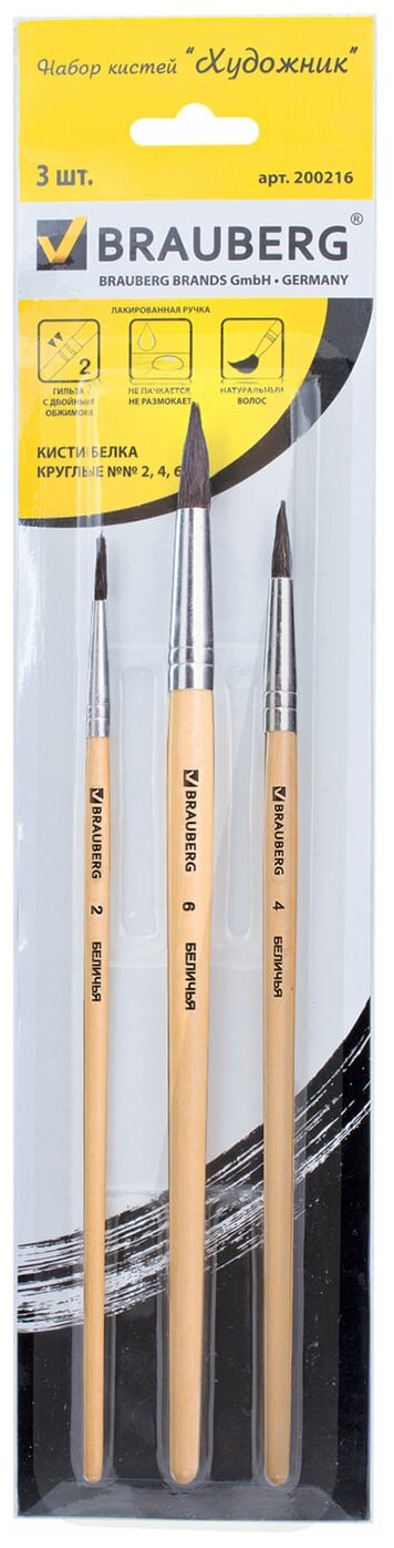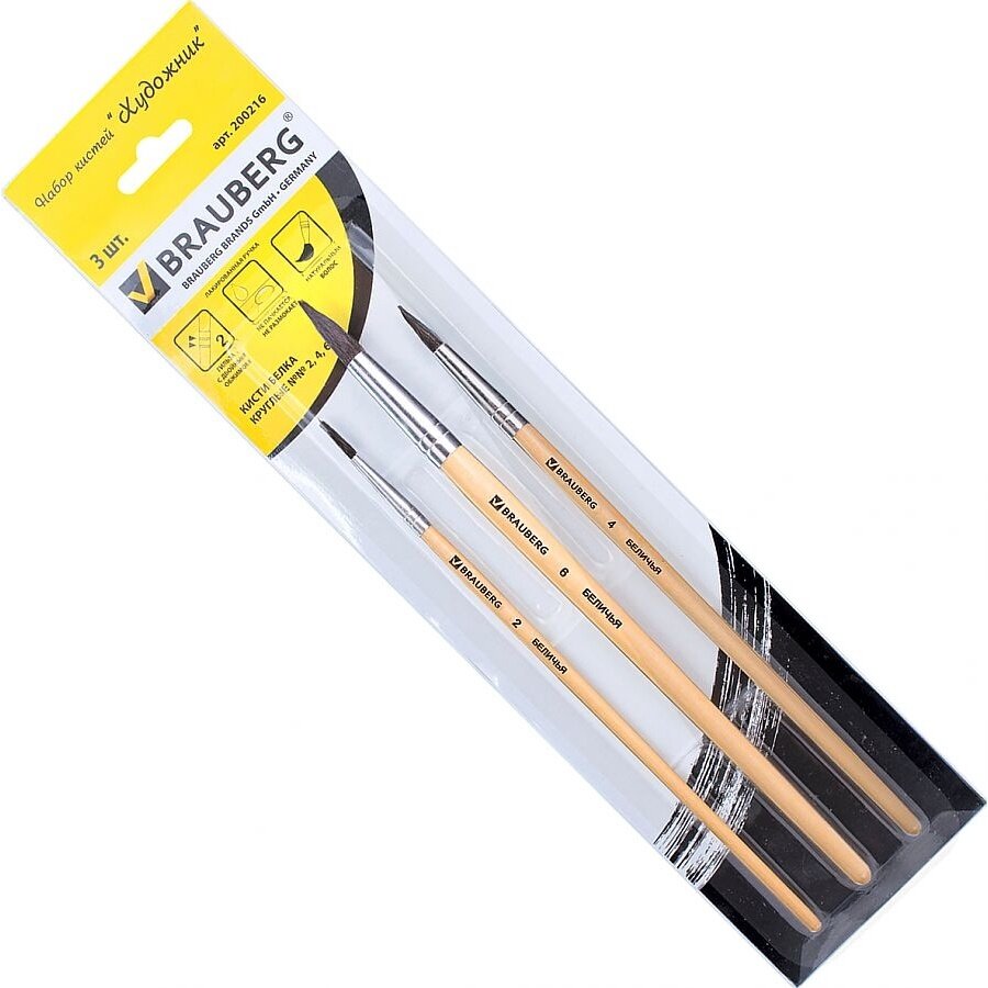 Набор кистей из 3 штук "Художник" (200216) Brauberg 3 шт.