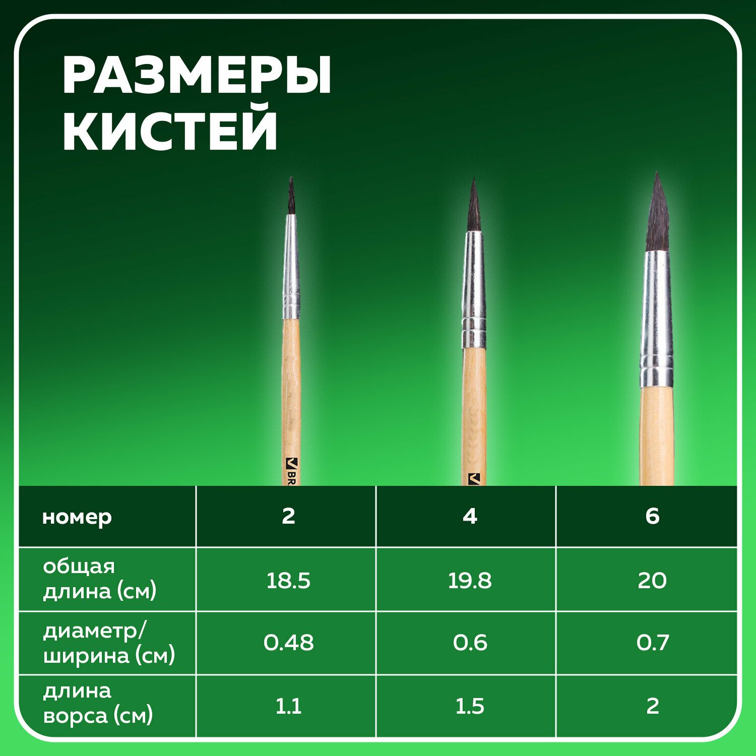 В наборе - кисти № 2, 4, 6.