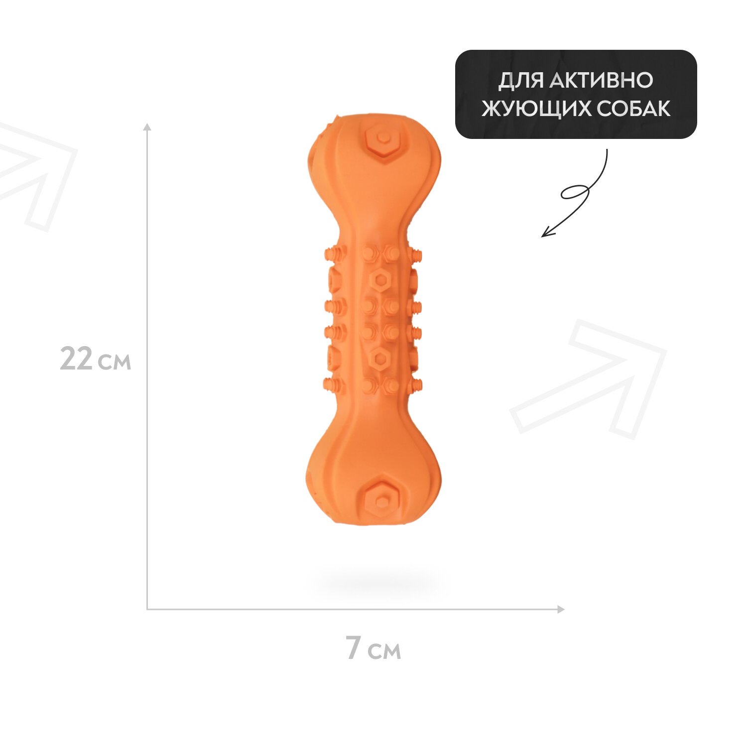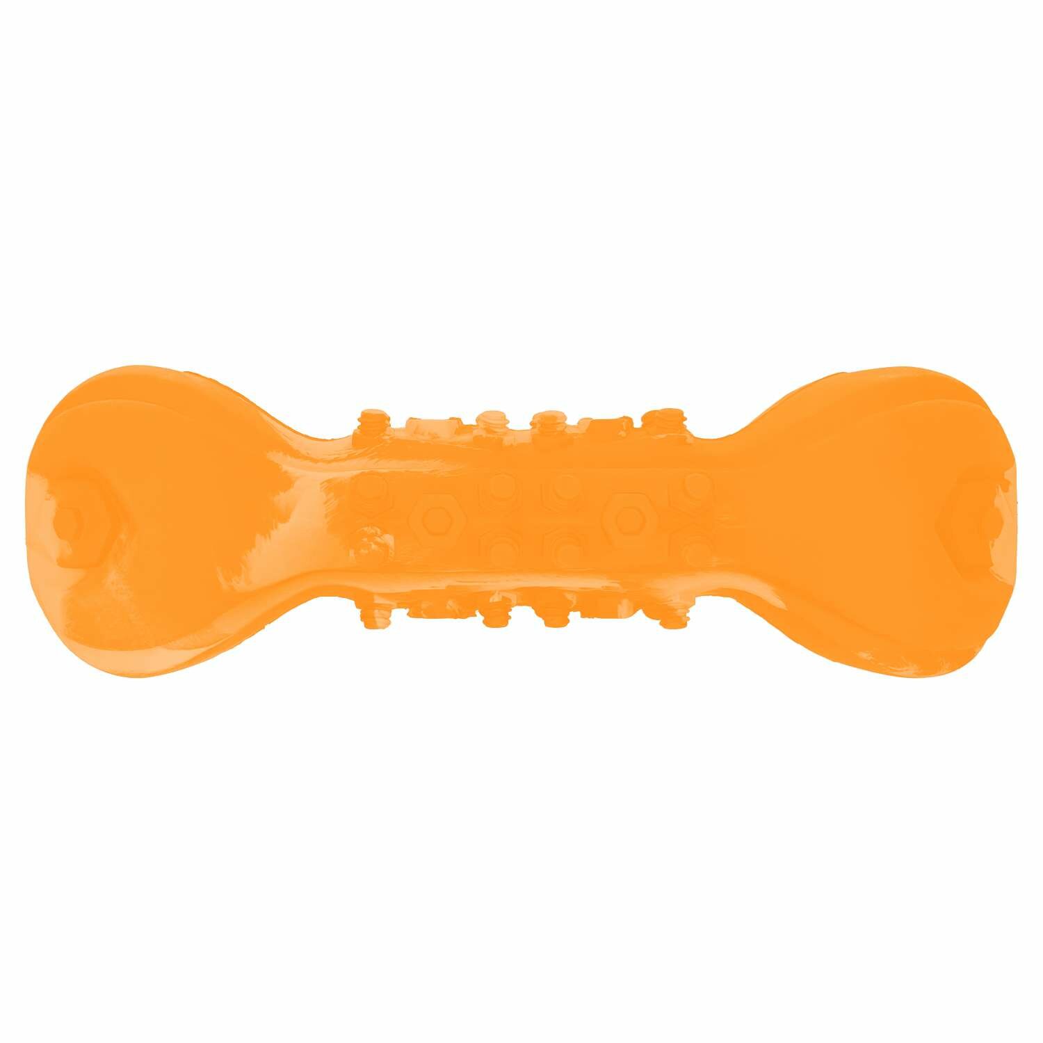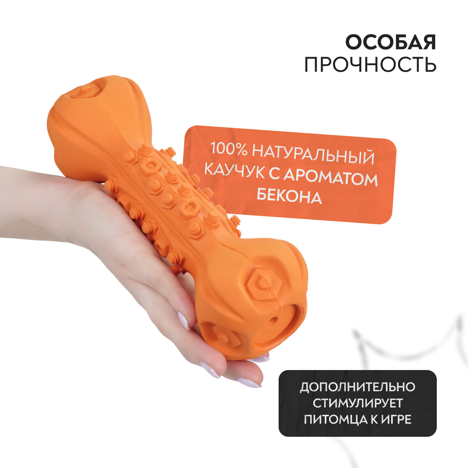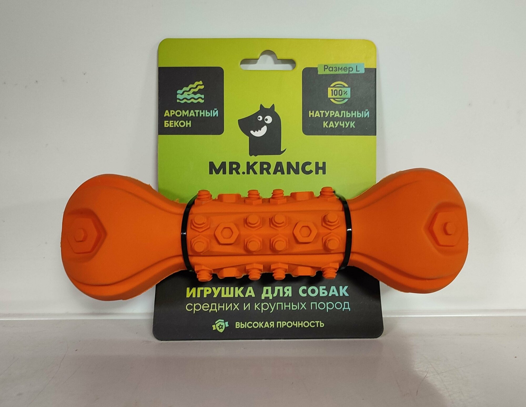 Mr.Kranch игрушка для собак гантель дентальная с пищалкой с ароматом бекона (22 см. Оранжевый)
