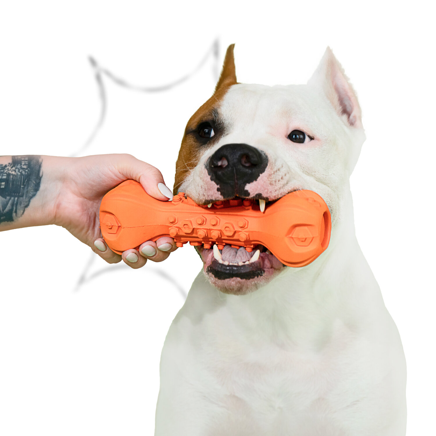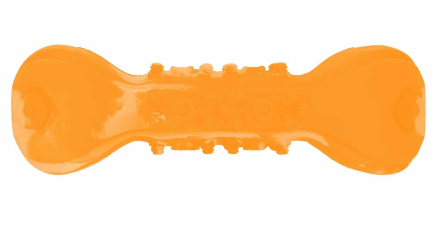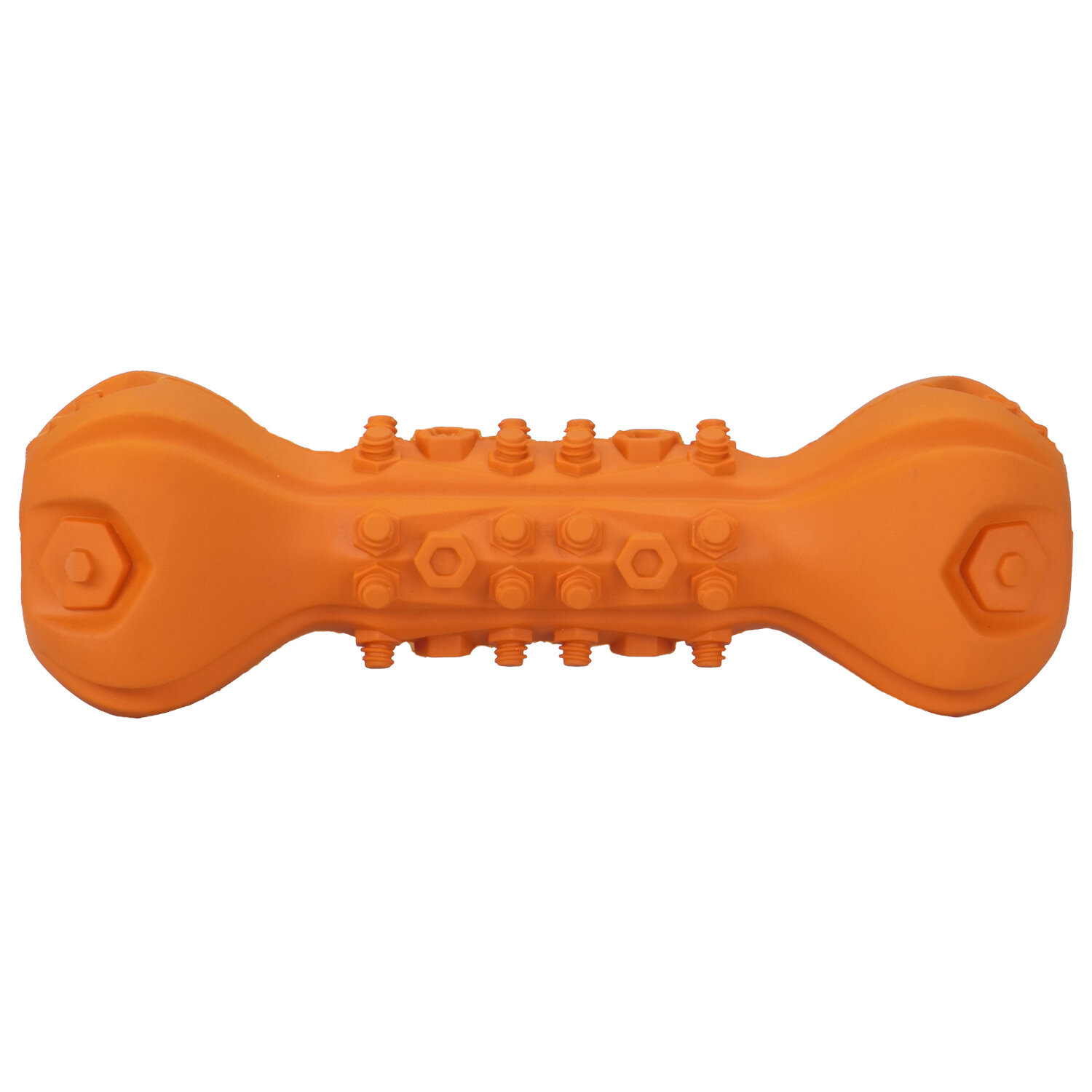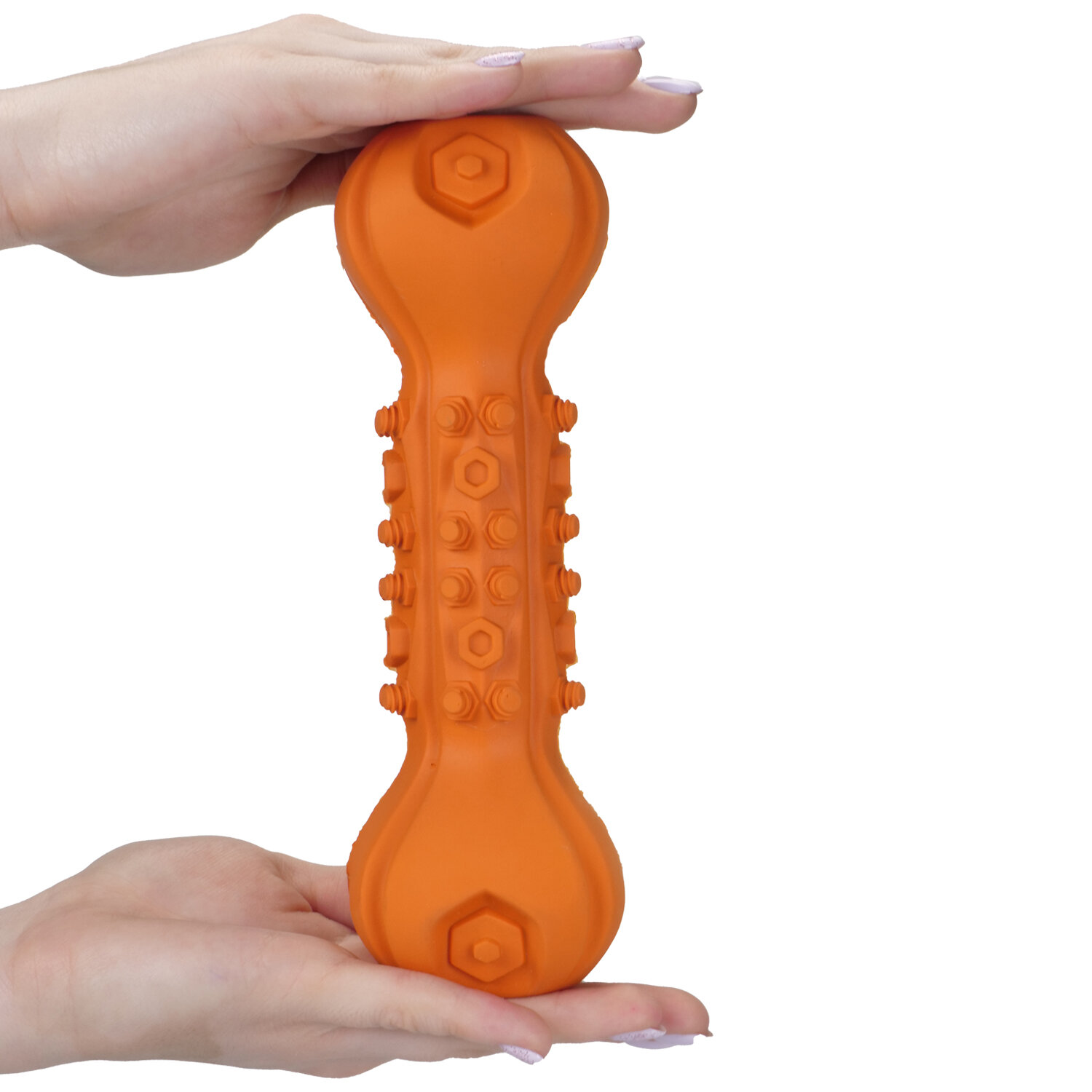 Mr.Kranch игрушка для собак гантель дентальная с пищалкой с ароматом бекона (22 см. Оранжевый)
