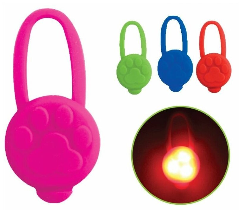 Брелок светодиодный TRIOL NIGHT CITY "Лапка", 66*32мм, цвет в ассортиментеСветодиодный силиконовый брелок послужит не только индикатором вашего животного в темное время суток, но и ярким украшением. Видимость в темноте в пределах 500м. Влагостойкая структура контроллера. До 200ч работы. Возможность замены батарейки. 3 режима свечения и 2 скорости мигания. Удобная фиксация. Цвета: розовый, зеленый, синий, красный. Размер:66*32*11мм.