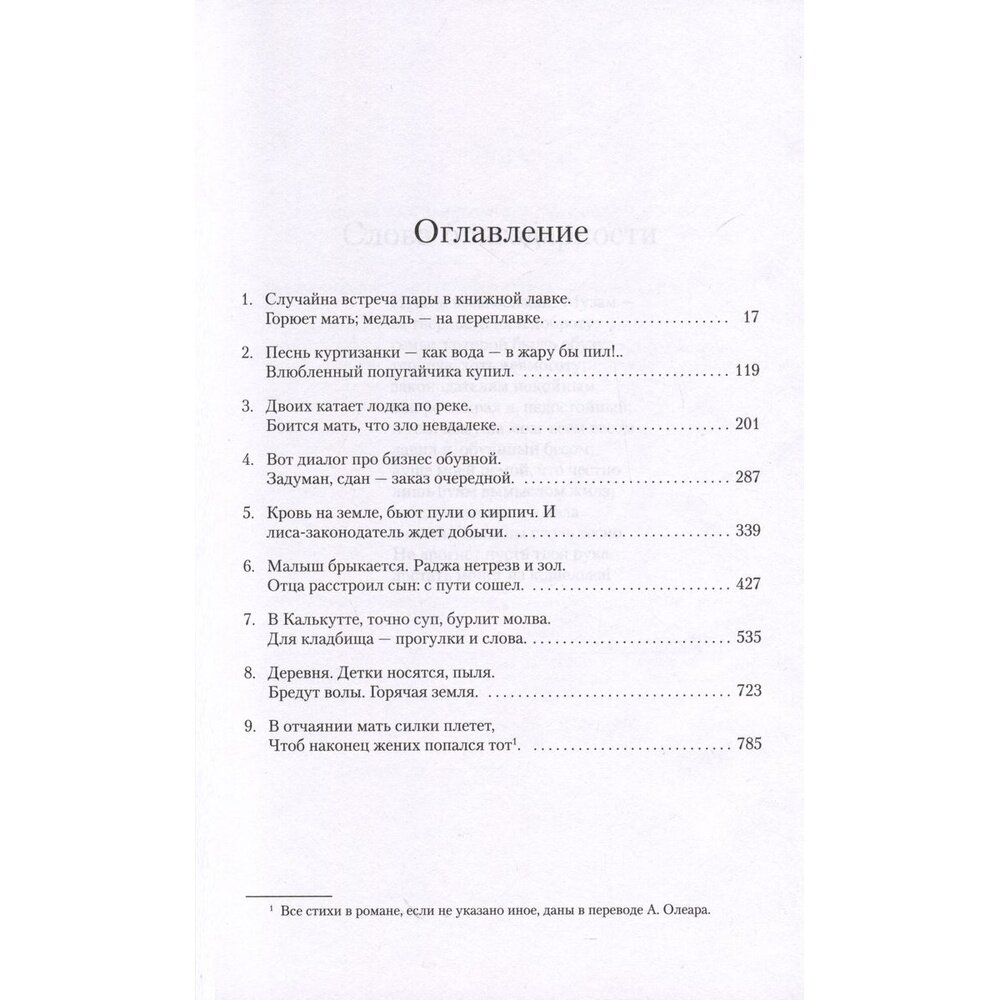 Большая книга с очень красивой обложкой). Понравилось, много героев и судеб. Иногда встречались слишком длинные исторические факты, хотелось быстрее вернуться к Лате и Амиту, Ману и Саиде, Минакши и её танцам. В конце первого тома появляются новые герои, хотя вот уже у Латы есть два потенциальных жениха (может ещё в неё и Ман влюбится?). Хотя Ману подойдёт Коко). Рашид проявил благородство с земельным вопросом, но не известно разрешит ли ему семья. В итоге остаётся много открытых вопросов и придётся читать огромный второй том.