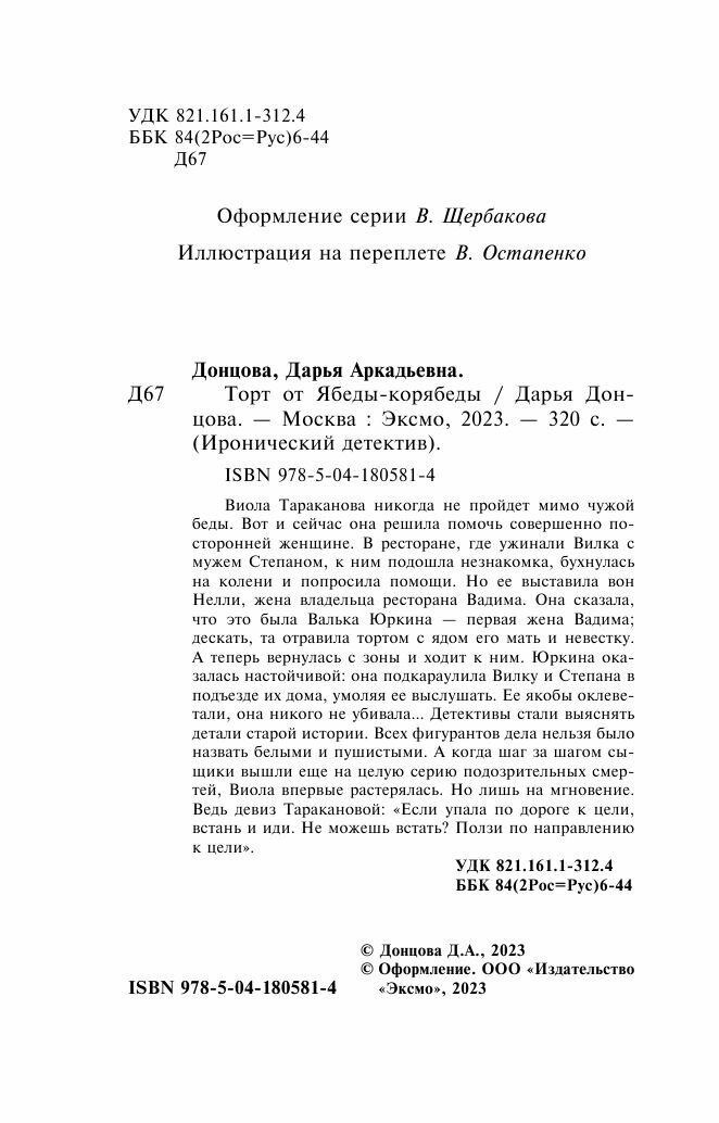 Книга: Торт от Ябеды-корябеды (Донцова Дарья Аркадьевна); ООО "Издательство "Эксмо", 2023
