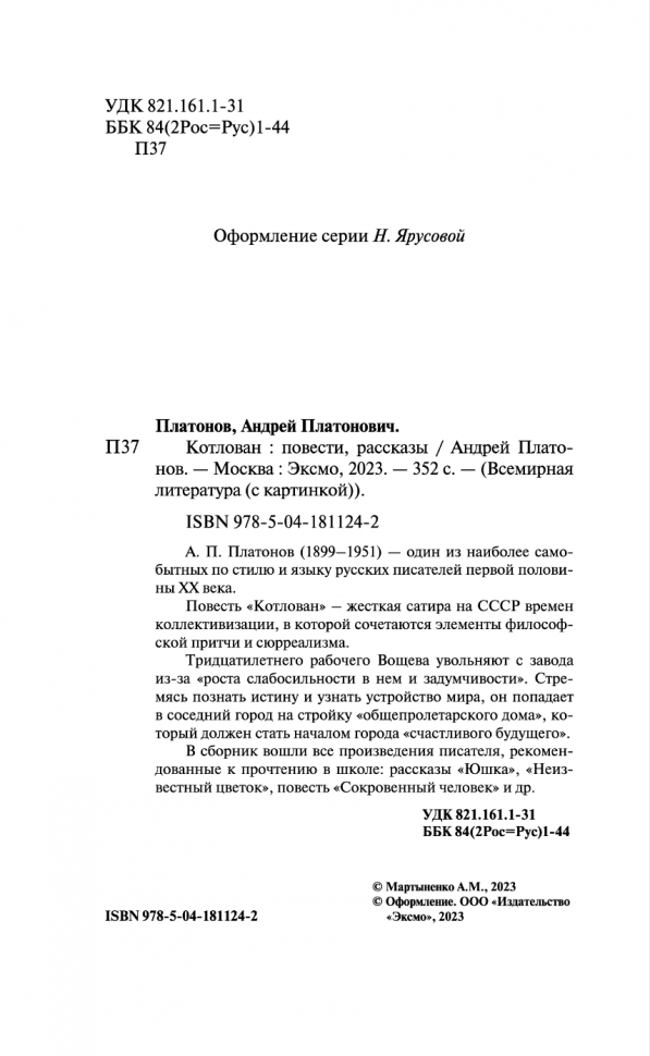 Котлован. Повести. Рассказы (Платонов Андрей Платонович); ООО "Издательство "Эксмо", 2023