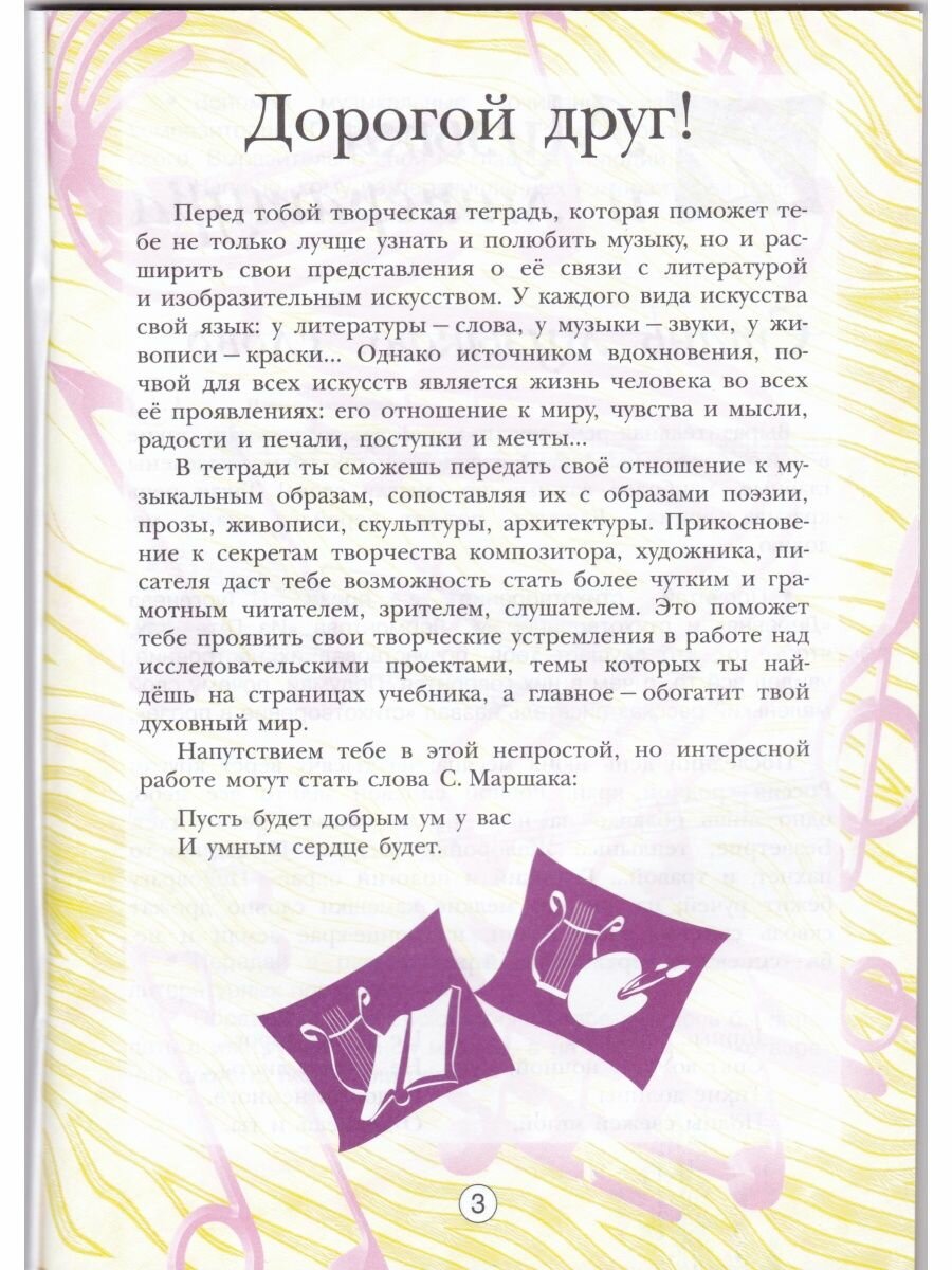 Творческая тетрадь входит в учебно-методический комплект "Музыка" для 5 класса общеобразовательных организаций авторов Г. П. Сергеевой, Е. Д. Критской. Она содержит вопросы, творческие задания и предназначена для самостоятельной работы учащихся.