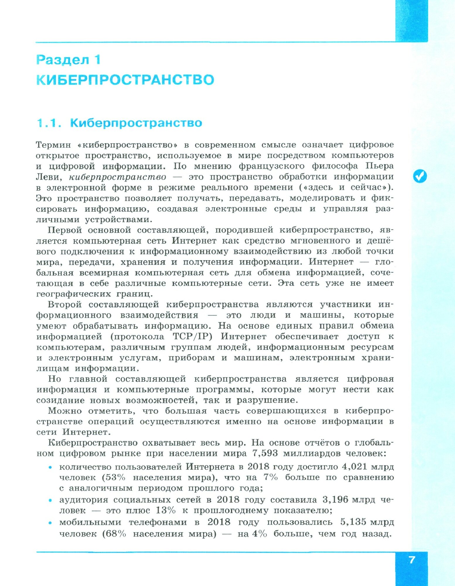 Учебное пособие входит в серию «Информационная безопасность» для учащихся 2–11 классов. Оно предназначено для проведения уроков по информационной безопасности в 7–9 классах (информатика, ОБЖ), а также для внеурочной деятельности обучающихся в форме курса по выбору школьников. Пособие ориентировано на современные тенденции в области безопасной работы в сети Интернет, включая доступные для школьников социокультурные ресурсы, новые средства глобальной медиасреды, цифровые устройства в быту. Состоит из разделов «Киберпространство», «Киберкультура» и «Киберугрозы» для изучения материала и проведения практических работ в 7, 8 и 9 классах соответственно и раздела «Проверь себя» для итогового контроля.