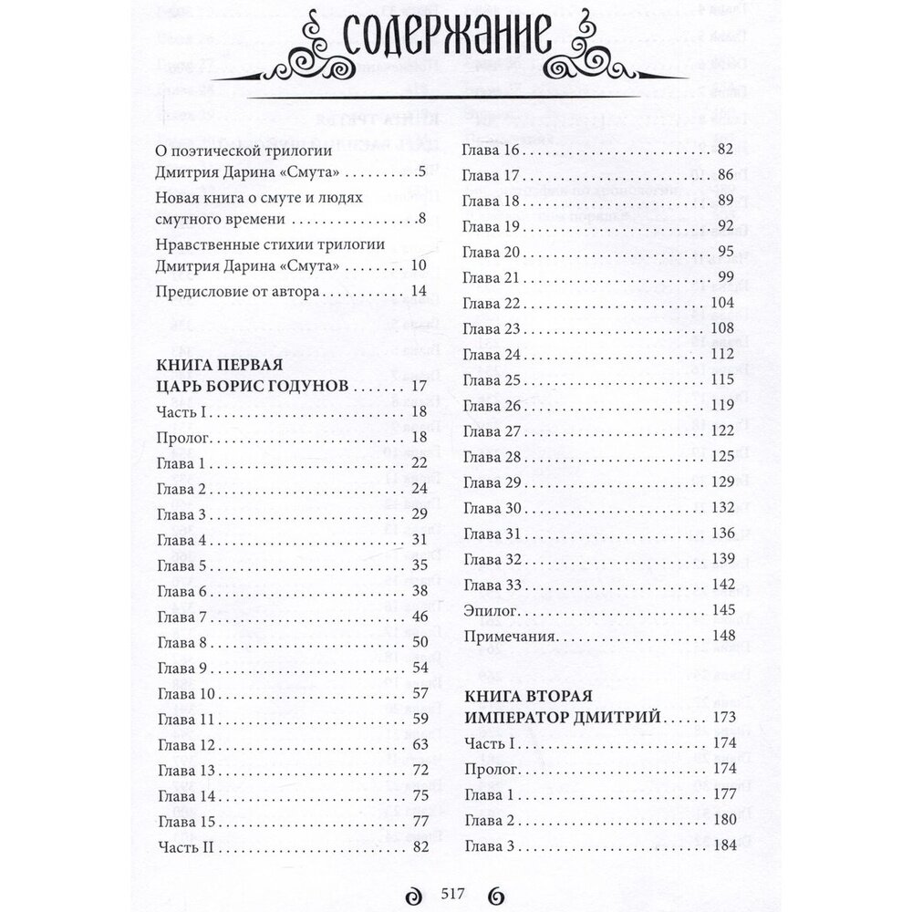 Драматическая поэтическая трилогия члена Союза писателей России, ЛНР и ДНР, известного поэта, писателя и публициста Дмитрия Дарина "СМУТА" погружает читателя в лихой и беспощадный водоворот событий на Руси начала XVII века, гражданской войны и польско-литовской интервенции в периоды царствования Бориса Годунова, Лжедмитрия I и Василия Шуйского. Основана на летописных и документальных источниках, записях очевидцев и участников тех трагических событий, а также трудах всех значимых историков России и Польши XVIII-XXI веков, собранных во внушительную библиографию. Представляет интерес как для специалистов по истории России XVII века, так и для широкого круга читателей, интересующихся историей Отечества в его смутные времена.