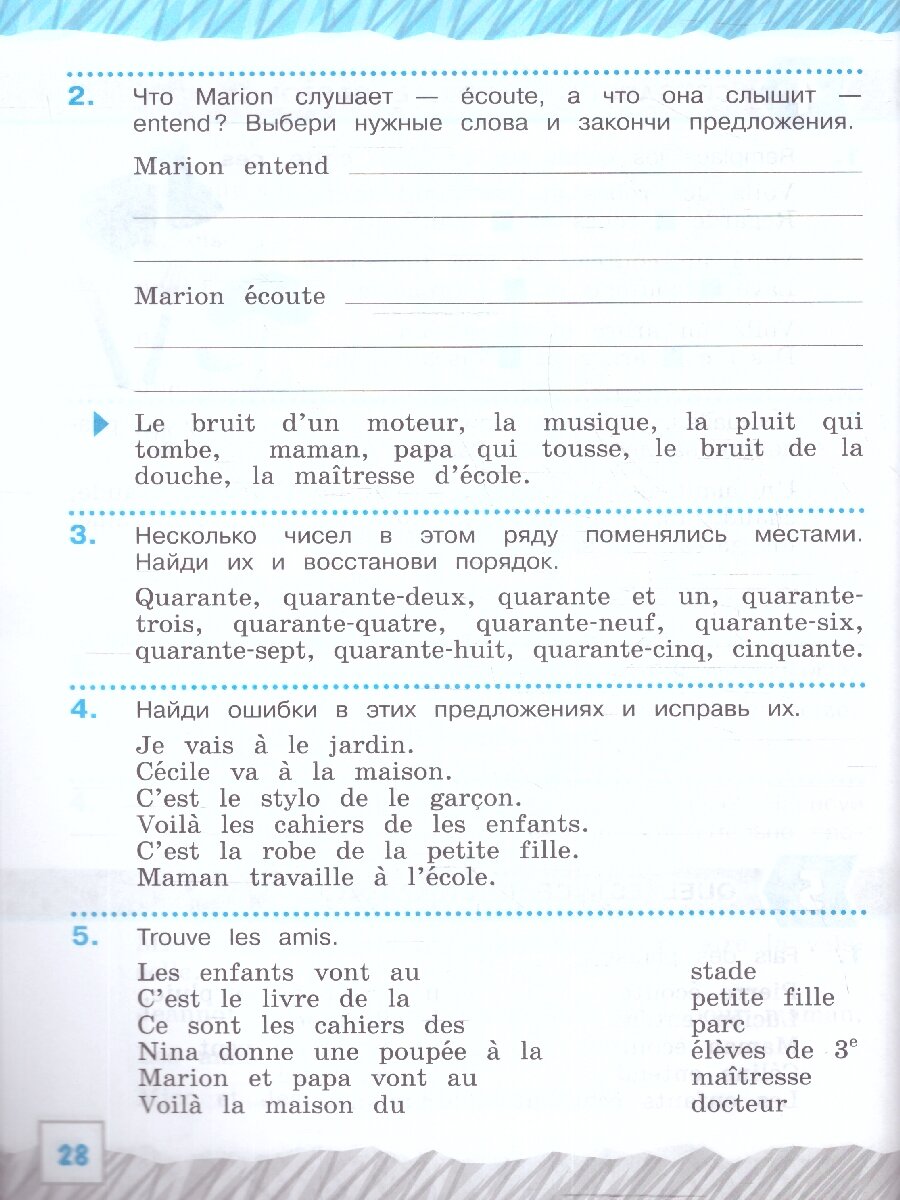 Рабочая тетрадь входит в учебно-методический комплект по французскому языку для 3 класса общеобразовательных организаций и школ с углублённым изучением французского языка, является его неотъемлемой частью и дополняет грамматическое и лексическое содержание учебника. Рабочая тетрадь включает разнообразные упражнения, в том числе занимательного и игрового характера, которые помогут детям на начальном этапе изучения французского языка.