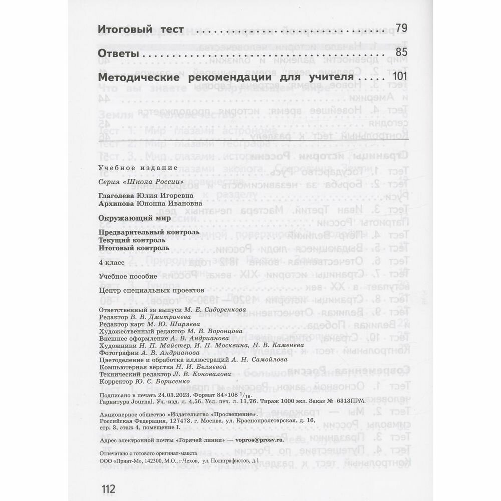 Окружающий мир. 4 класс. Предварительный контроль. Текущий контроль. Итоговый контроль. Учебное пособие (Глаголева Юлия Игоревна,Архипова Юнонна Ивановна); Просвещение, 2024