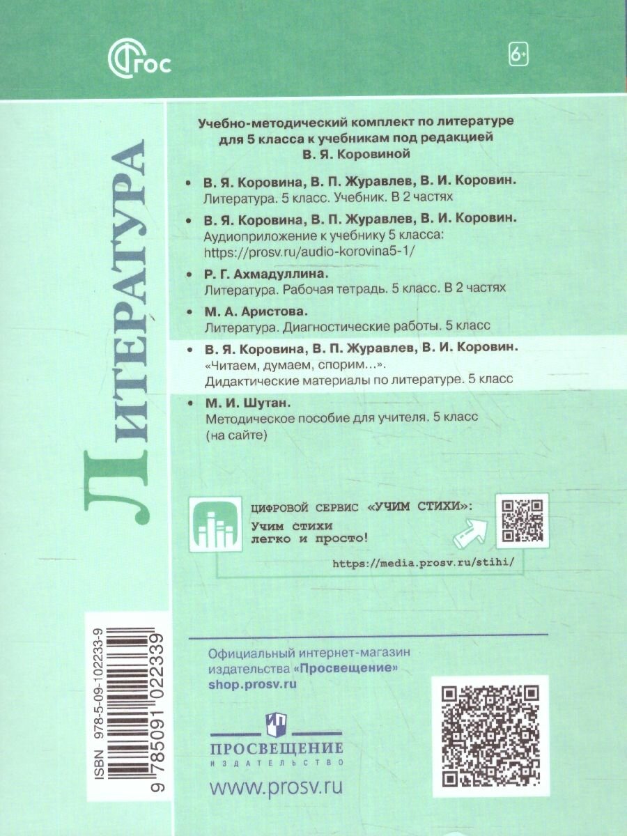 Литература. Читаем думаем спорим. 5 класс. Дидактические материалы (Валентин Иванович Коровин, Виктор Петрович Журавлев, Вера Яновна Коровина); Просвещение, 2025