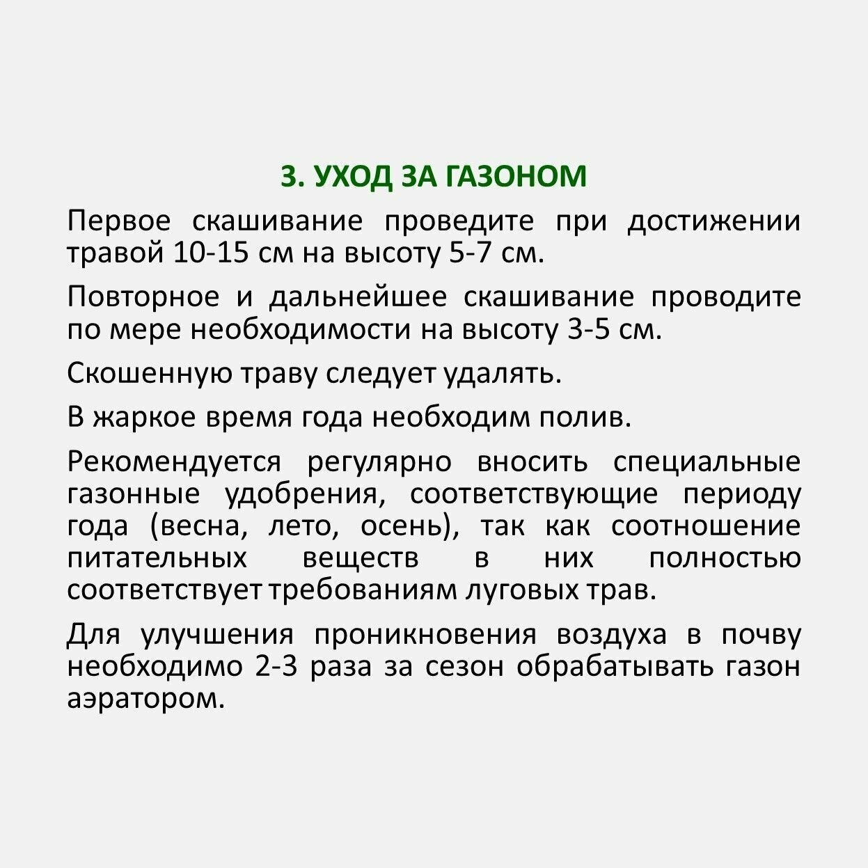 | Сорта трав | 35% - овсяница красная красная Релевант 25% - овсяница красная красная Диппер/Джасперина 15% - овсяница красная волосовидная Николь 10% - овсяница красная жесткая Джоанна 15% мятлик луговой Даунтлесс/Цептор |