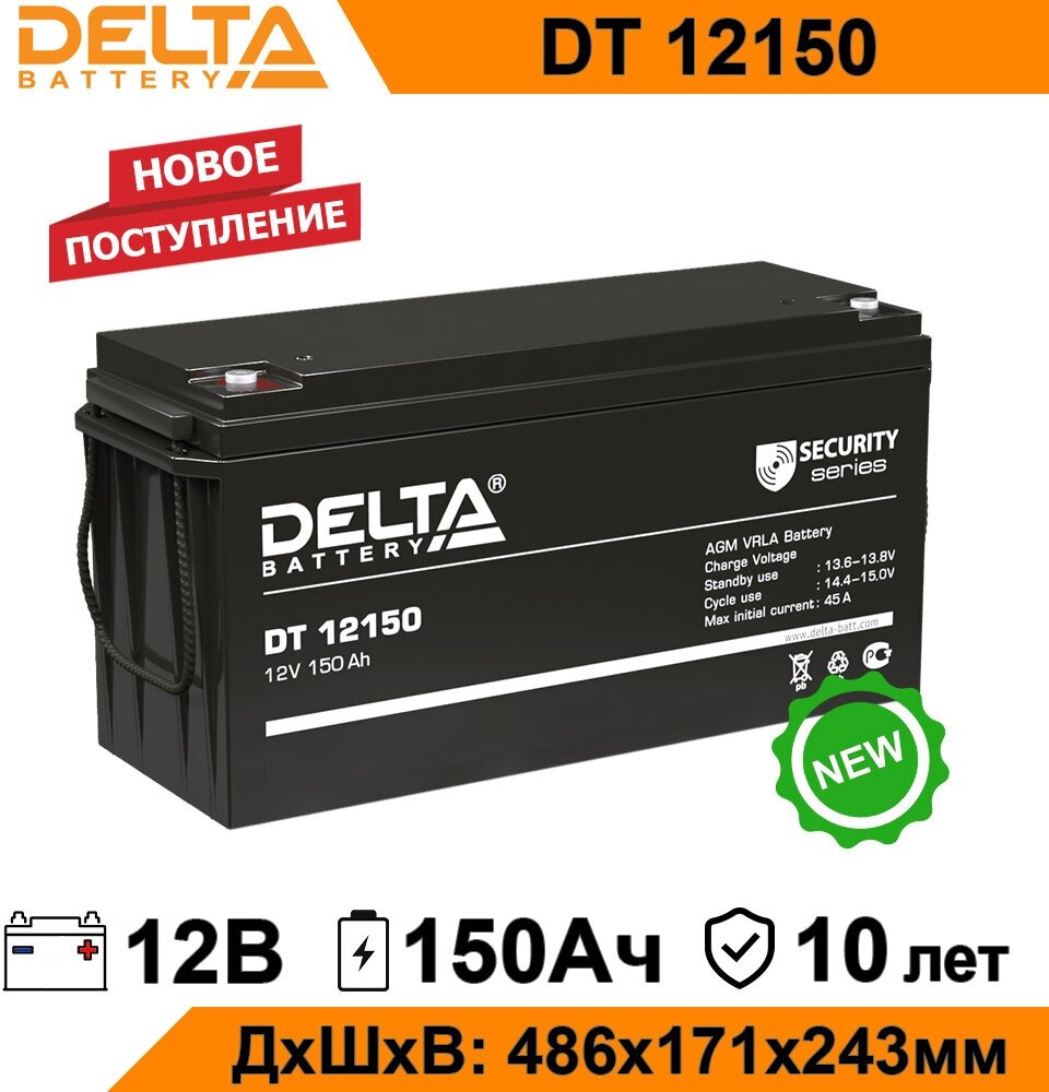 Герметизированный VRLA cвинцово-кислотный аккумулятор Delta напряжением 12В и емкостью 150Ач изготовлен по технологии AGM (с микропористым заполнителем, пропитанным электролитом). Корпус изготовлен из негорючего ABS пластика. Срок службы аккумулятора рассчитан на 7-10 лет работы. Аккумулятор предназначен для работы в режиме постоянного подзаряда (т.н. буферный режим).