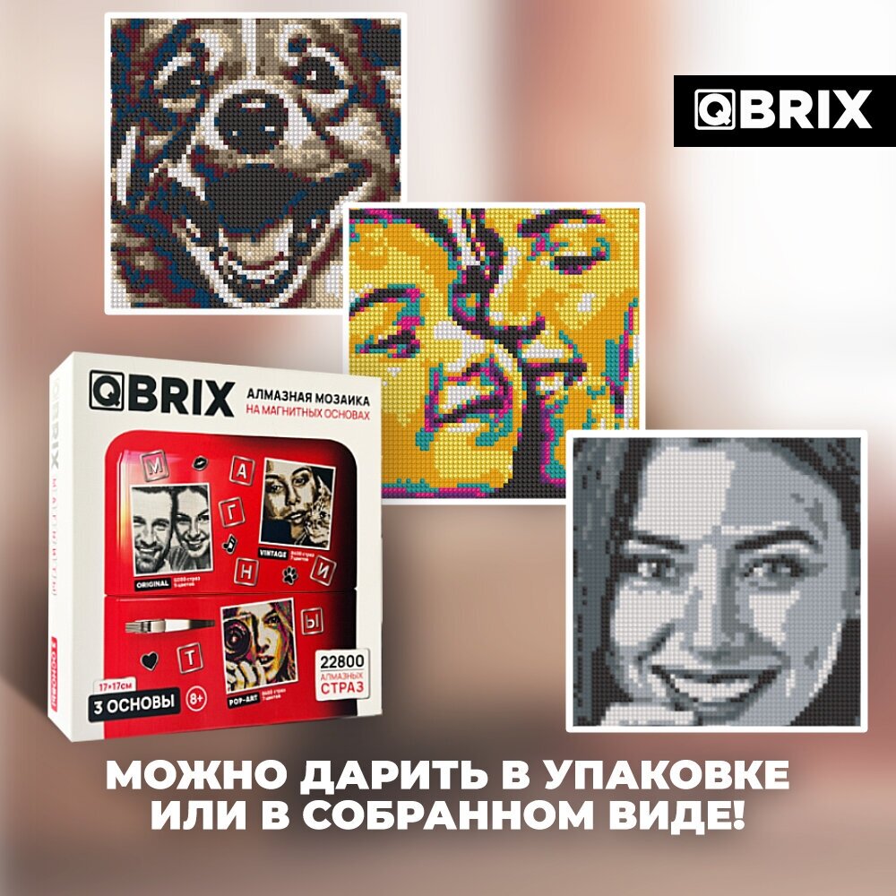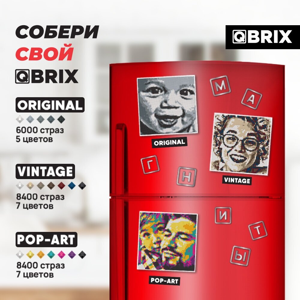 Представляем вам Алмазную Мозаику на магнитных основах! Соберите сразу три любимые фотографии в разных цветовых гаммах: одну картину VINTAGE, одну картину ORIGINAL и одну картину POP-ART, ведь для этого все необходимое уже в комплекте, и украсьте ими любые металлические поверхности! Алмазная живопись от QBRIX позволяет своими руками собрать любое фото из кристаллов! Вас ожидают часы творческого процесса!Как это работает?Покупаете набор кристальной мозайки;