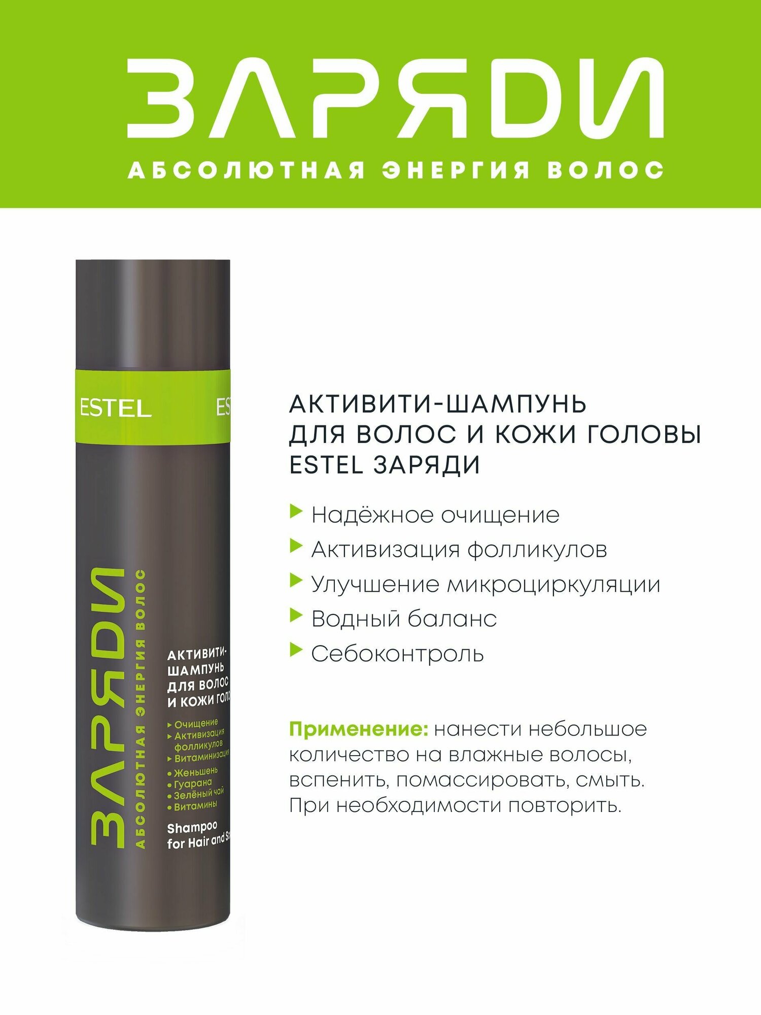 Активити-шампунь для волос и кожи головы Заряди Estel (NRG/S250)