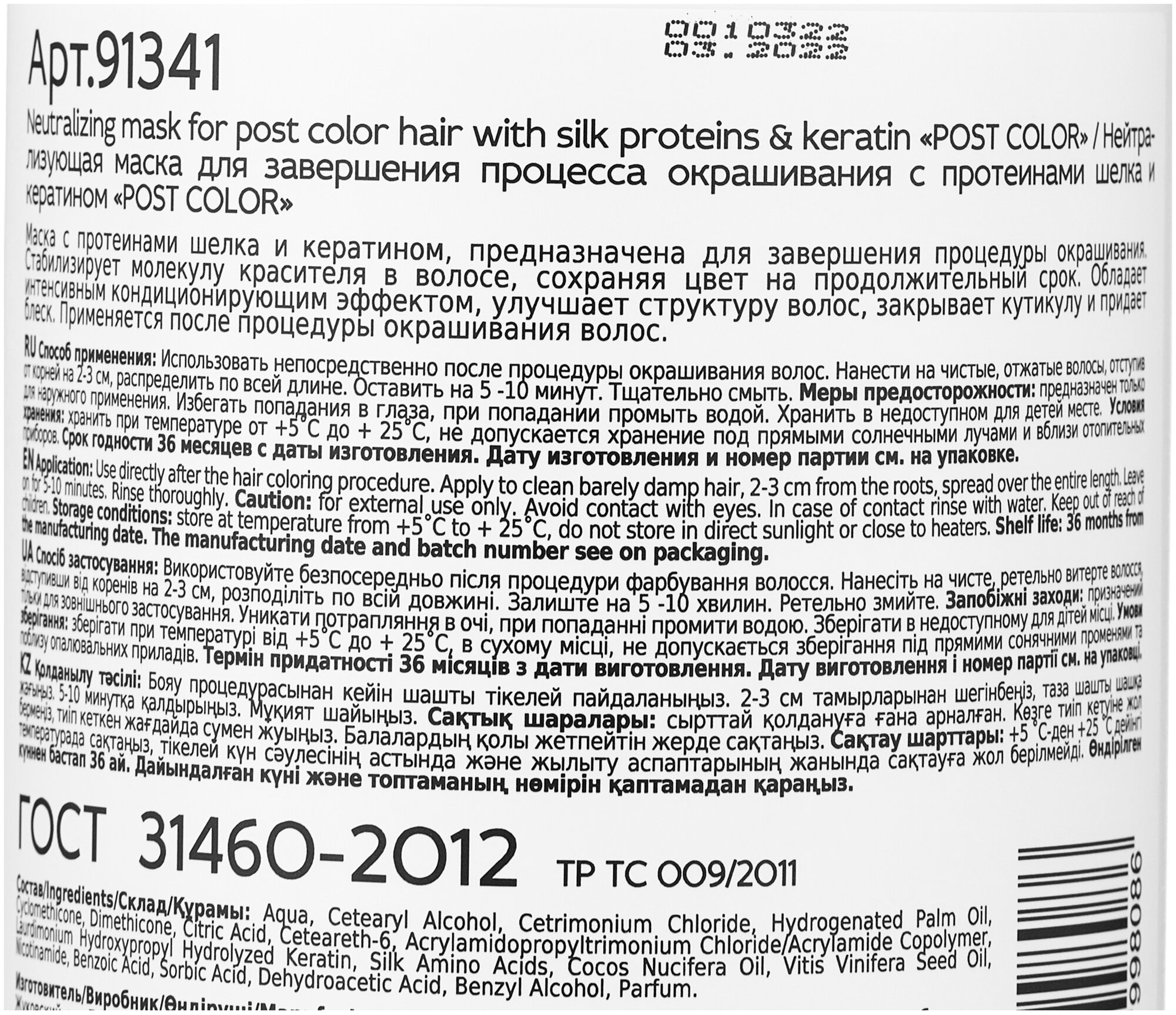 Нейтрализующая маска для завершения процесса окрашивания с протеинами шелка и кератином.