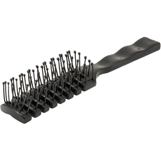Скелетная щетка или «рыбья кость» незаменимая вещь для создания объема волосам. Такой вид щетки отлично захватывает пряди волос, при этом не травмируя их. Необходимо лишь накрутить небольшую прядь и просушить ее феном. Таким образом волосы по всей длине получат хорошую сушку. Расческа удобна для придания волосам нужное направление. Оснащена защитными шариковыми наконечниками для сохранения структуры и корней волос. Пластиковый корпус расчески - термостойкий. Цвет: черный