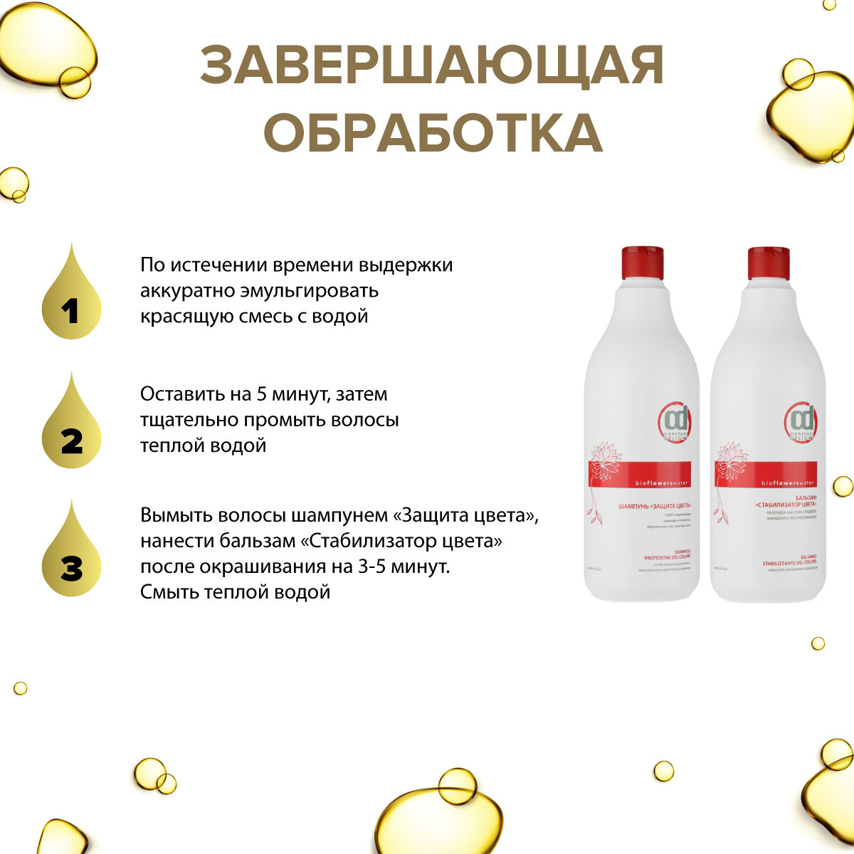 5 магических масел в составе красителя послойно закрепляют пигмент в структуре волоса и разглаживают кутикулярный слой, создавая тем самым волшебный многомерный мультитональный блеск. Питание и увлажнение волос в процессе окрашивания, стойкий, глубокий цветовой результат, палитра из 51 интенсивного модного оттенка, легко комбинируемых между собой для получения индивидуальных цветов, превращают 5 MAGIC OILS в магический кристалл в руках мастера. СПОСОБ ПРИМЕНЕНИЯ: смешать в неметаллической емкости краситель и эмульсионный окислитель (1:1 - 1:2). Перед применением внимательно ознакомьтесь с инструкцией.