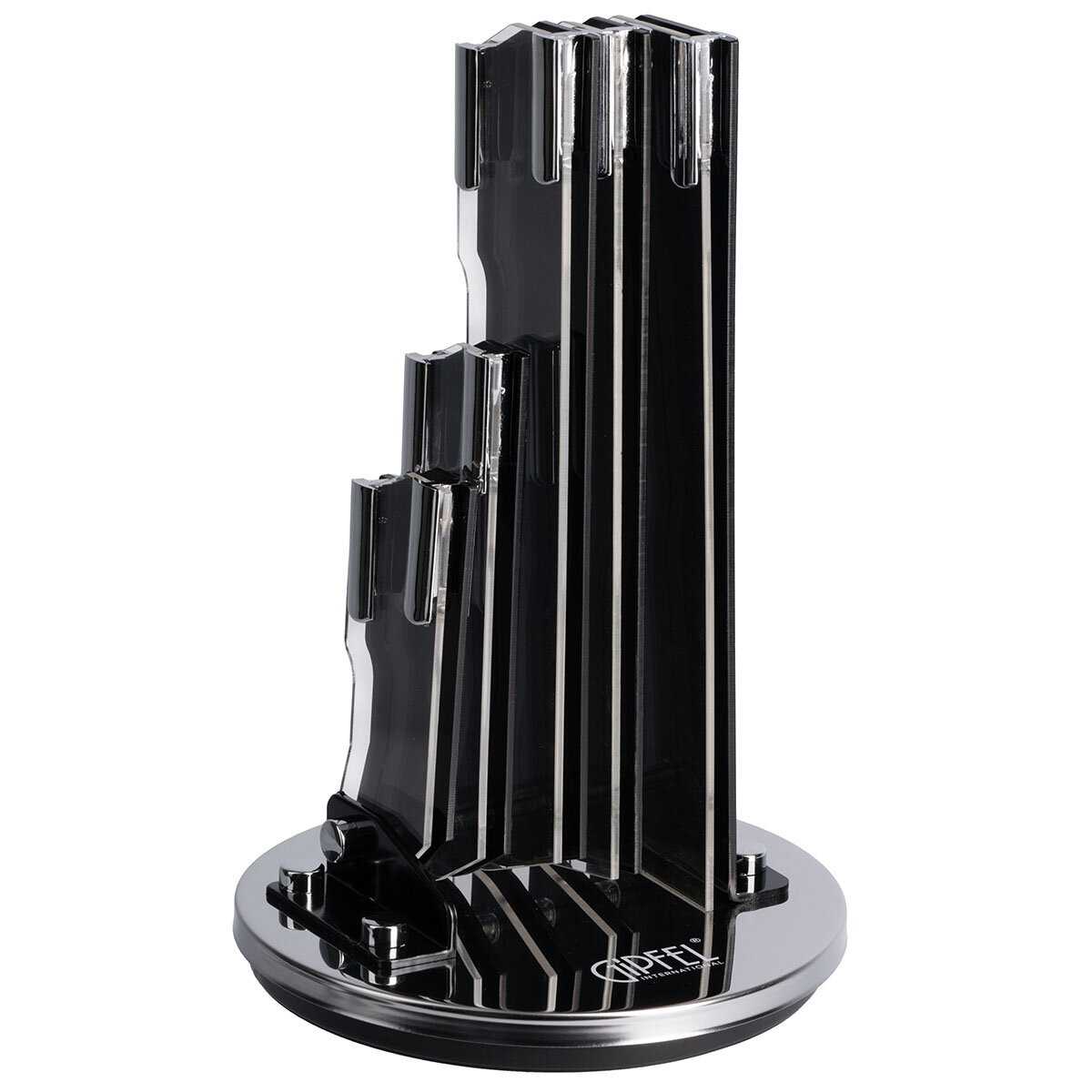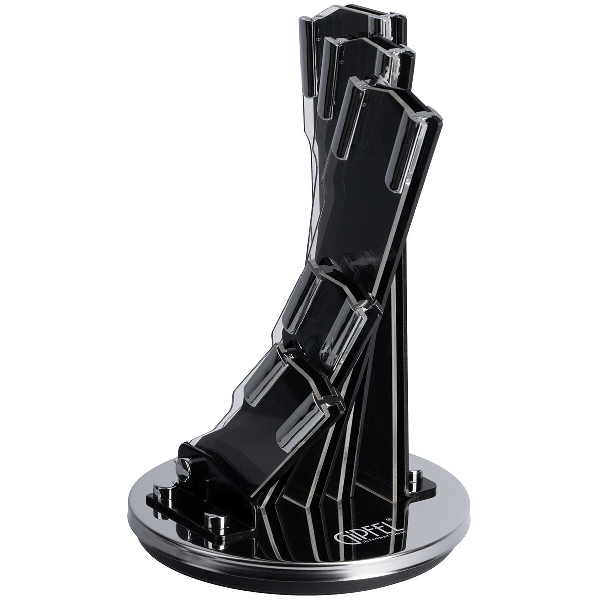 Ножи в стильной подставке из акрила. Дизайн подставки задуман так, чтобы Вам было удобно пользоваться ножами: двигающийся механизм позволяет расположит ножи друг за другом или в веерном порядке, чтобы каждый нож был на виду.