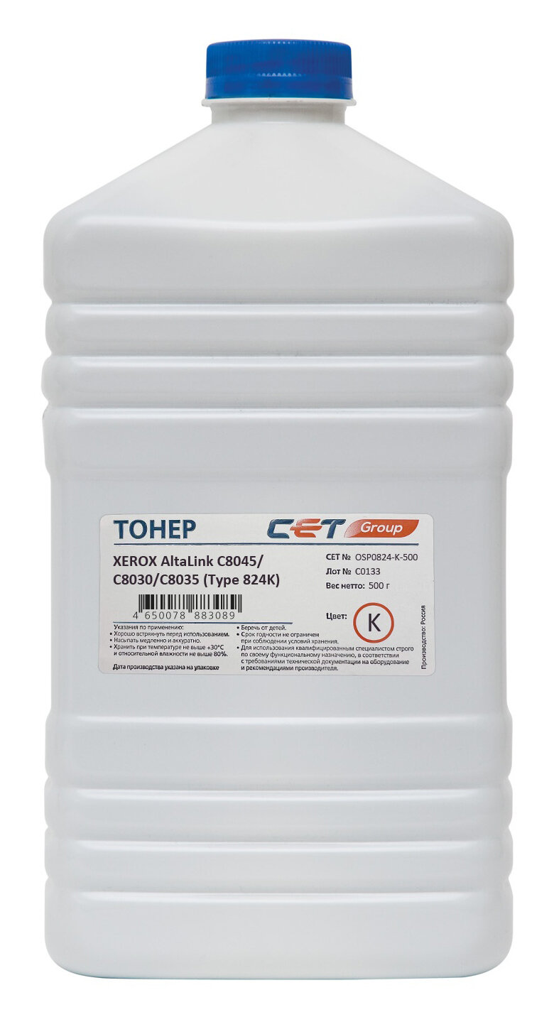 Тонер Cet Type 824 черный, бутылка, в упаковке 1 x 500грамм, для принтера XEROX AltaLink C8045/C8030/C8035 (OSP0824-K-500)