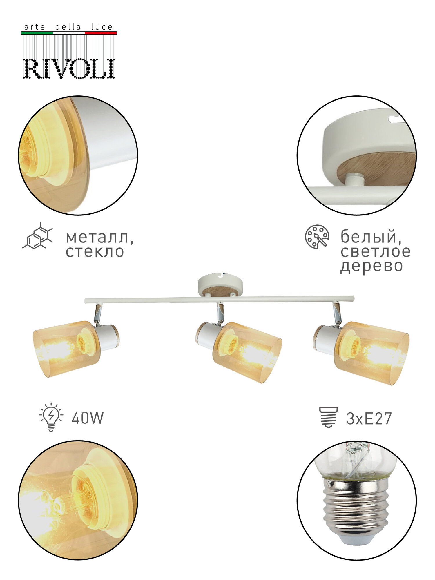 Спот Rivoli Jamilly Б0054662 - стильное и функциональное решение для освещения различных помещений.Дизайн и материалы: Спот выполнен в стиле модерн, сочетающем в себе коричневый цвет плафона и арматуру белого и светлого дерева. Материал арматуры - металл, что гарантирует прочность и долговечность изделия.Технические характеристики: Спот оснащен тремя лампочками с типом цоколя E27, мощностью 40 Вт каждая. Мощность спота составляет 120 Вт, что обеспечивает яркое и равномерное освещение. Класс электробезопасности I гарантирует безопасность использования. Степень пылевлагозащиты 20 позволяет использовать спот в различных условиях.Установка и использование: Спот Rivoli Jamilly предназначен для использования в гостиной, кабинете, коридоре, прихожей и спальне. Направление плафонов может быть любым, что позволяет настроить освещение в соответствии с вашими предпочтениями.Выбирая спот Rivoli Jamilly, вы получаете стильное и функциональное освещение для различных помещений, которое будет радовать вас своей практичностью и качеством.